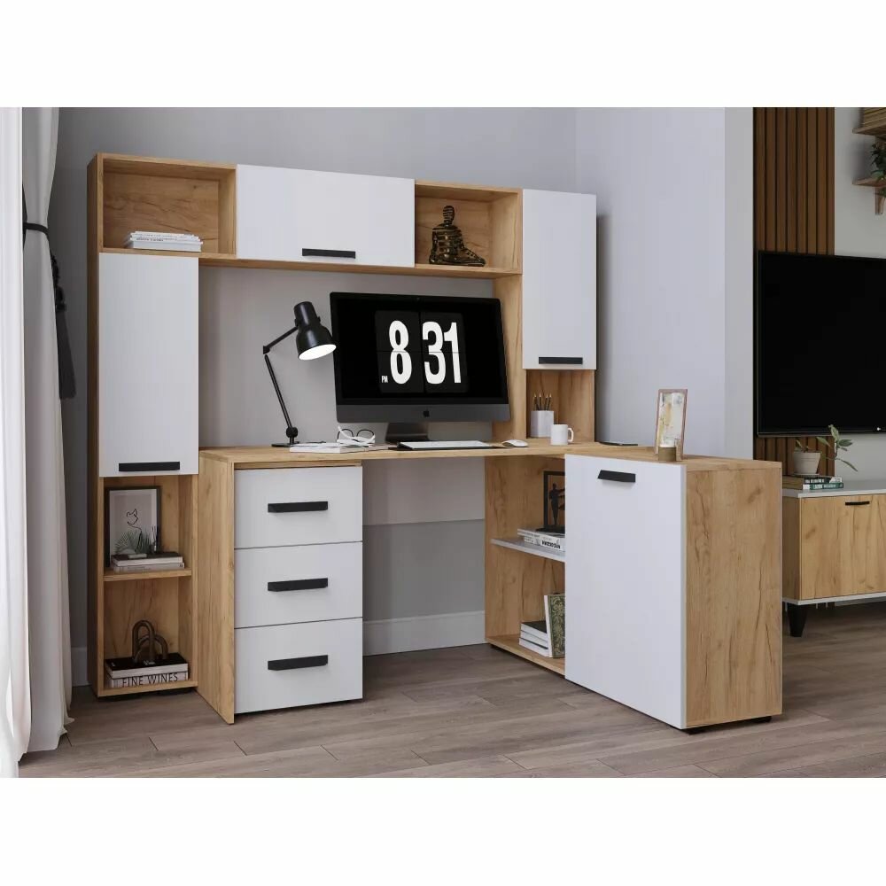 Стеллаж "Квартет-13" Дуб крафт золотой / Белый, ЛДСП, с полками, для стола 1350х552х250 тэкс интересное: