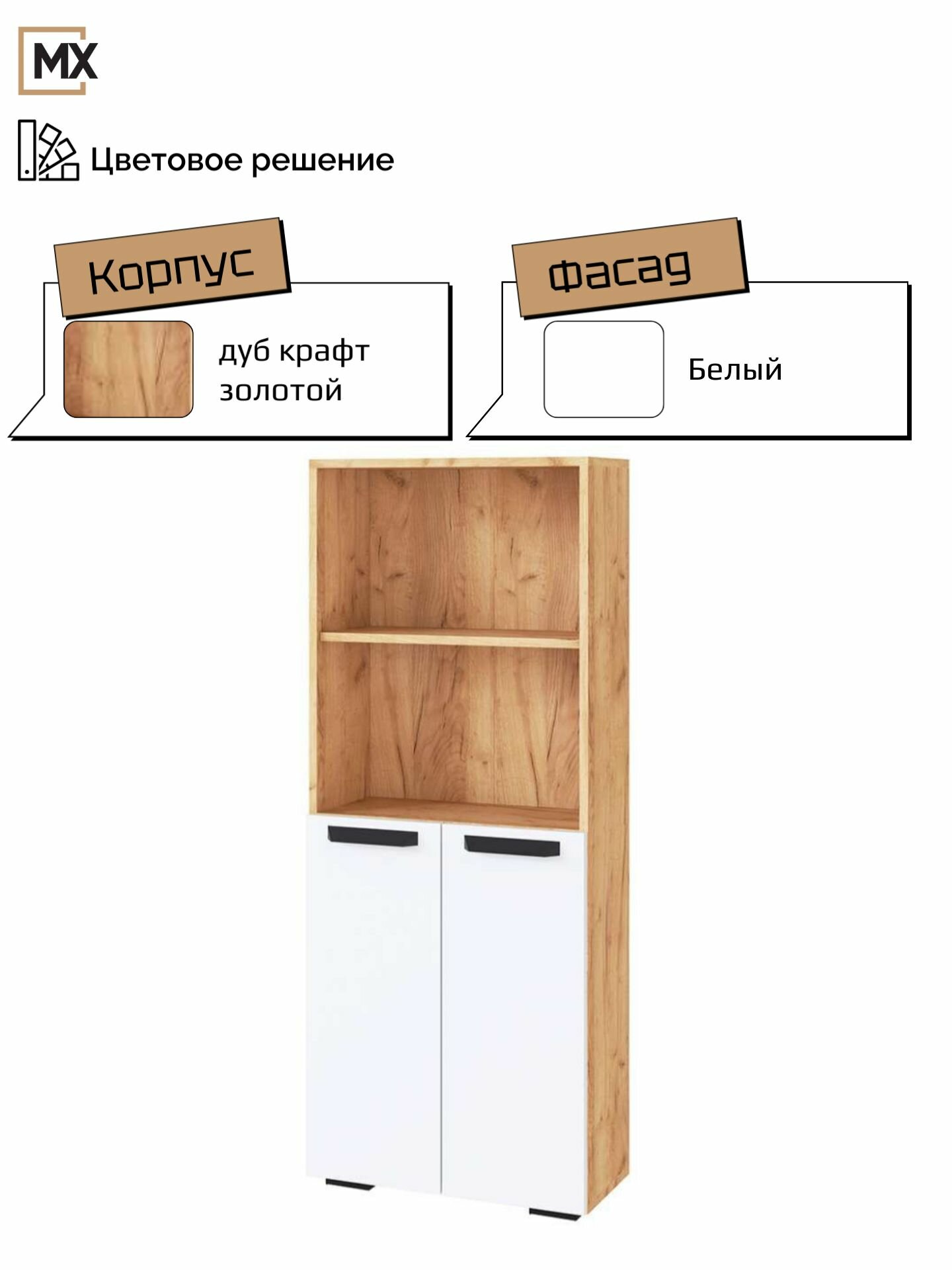 Стеллаж "Квартет-13" Дуб крафт золотой / Графит , ЛДСП, с полками, дверцами для стола 1350х552х250 тэкс