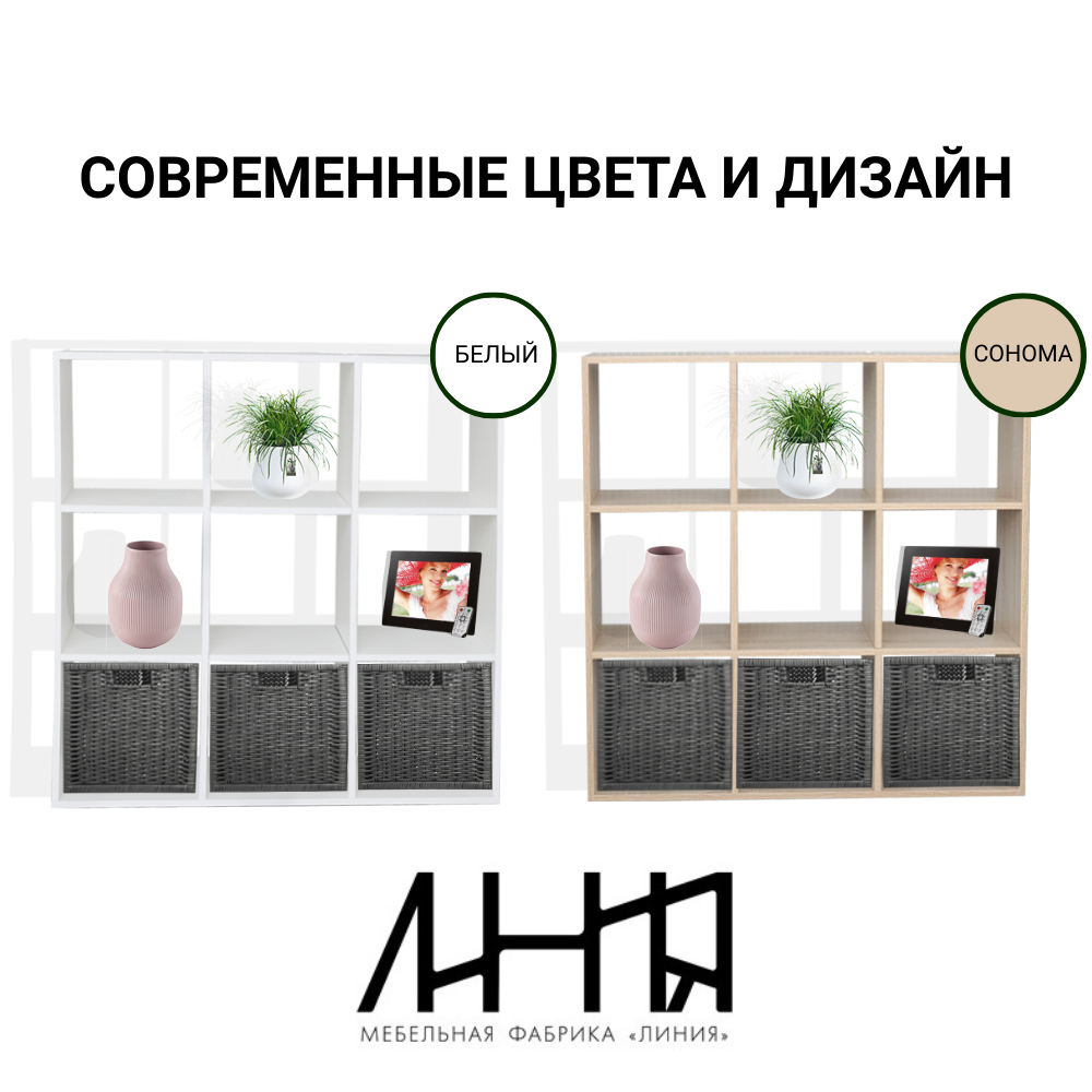 Стеллаж деревянный напольный, сонома, 105.5х105.5х33 см, 9 полок, "Версаль", мебельная фабрика "Линия" интересное:
