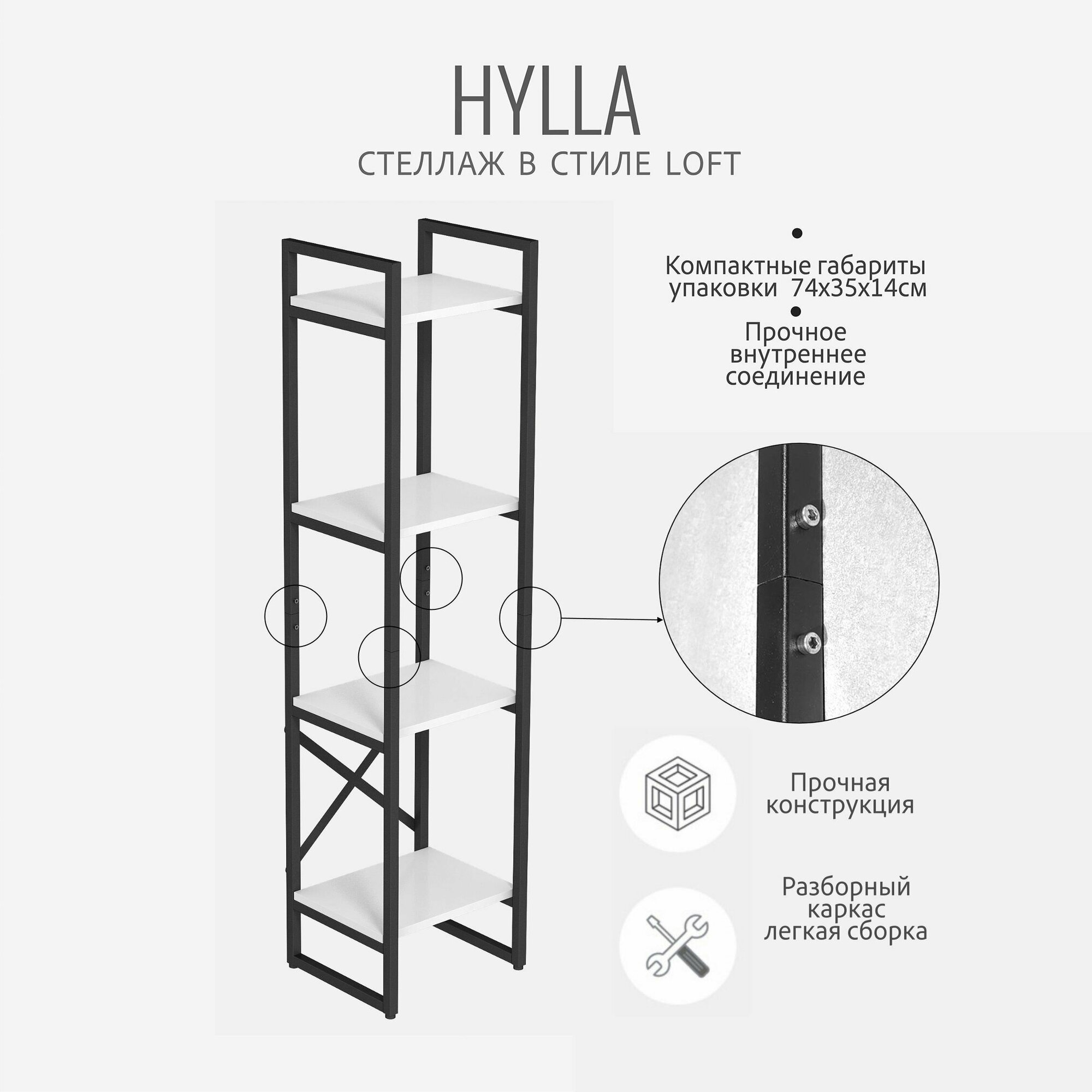 СохранитьСтеллаж HYLLA LOFT, белый, напольный, модульный шкаф с 4 деревянными полками, 141х34х30 см, гростат интересное: