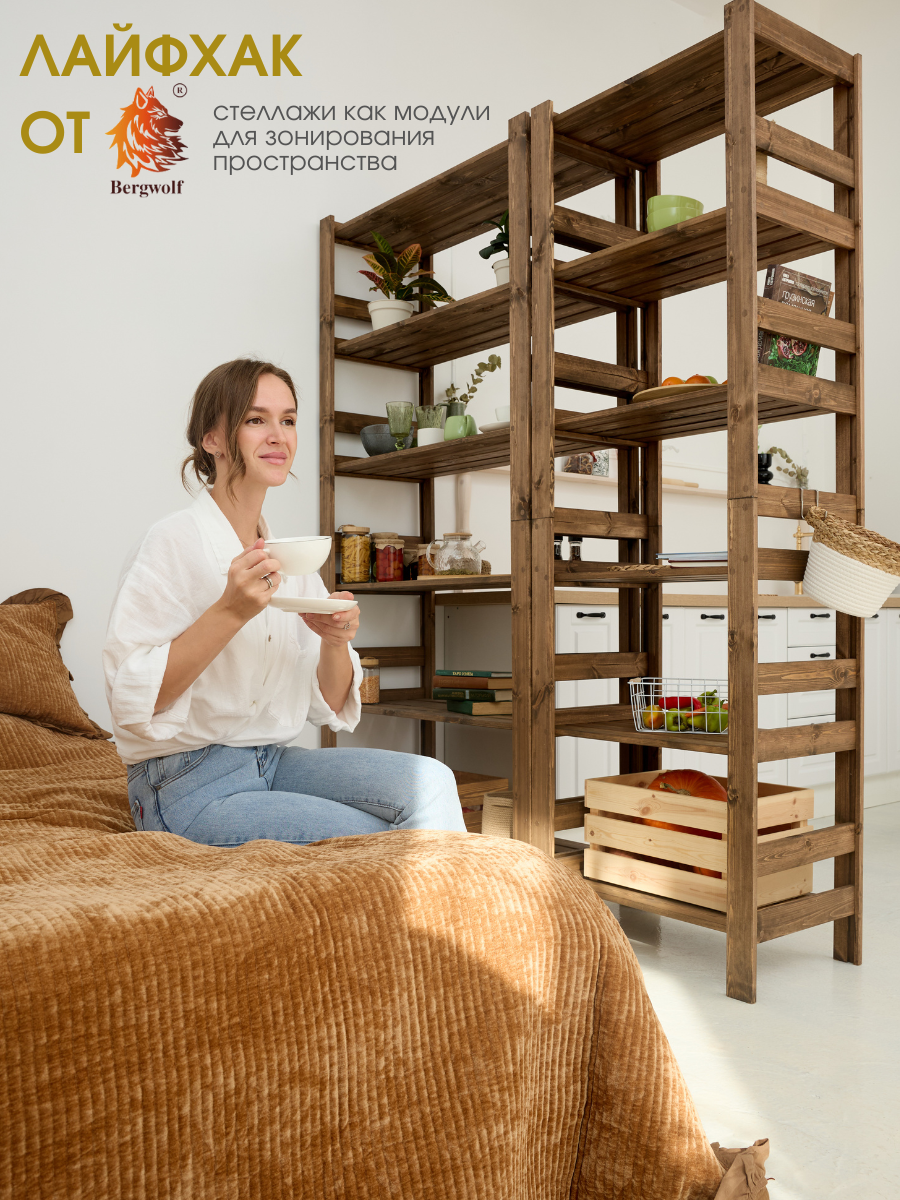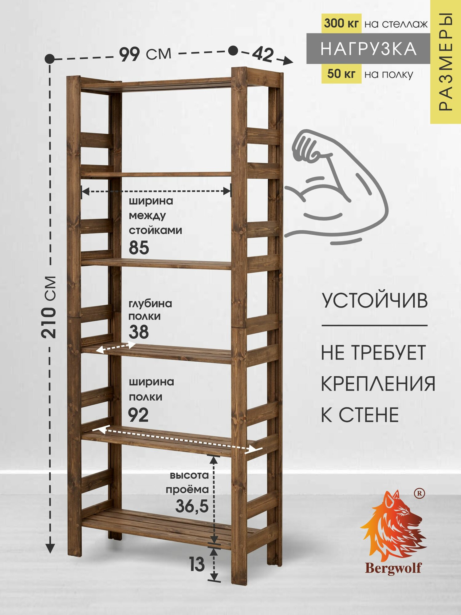 Стеллаж из массива дерева 210х99х42 см, покрыт маслом, 6 полок, нагрузка 300 кг интересное: