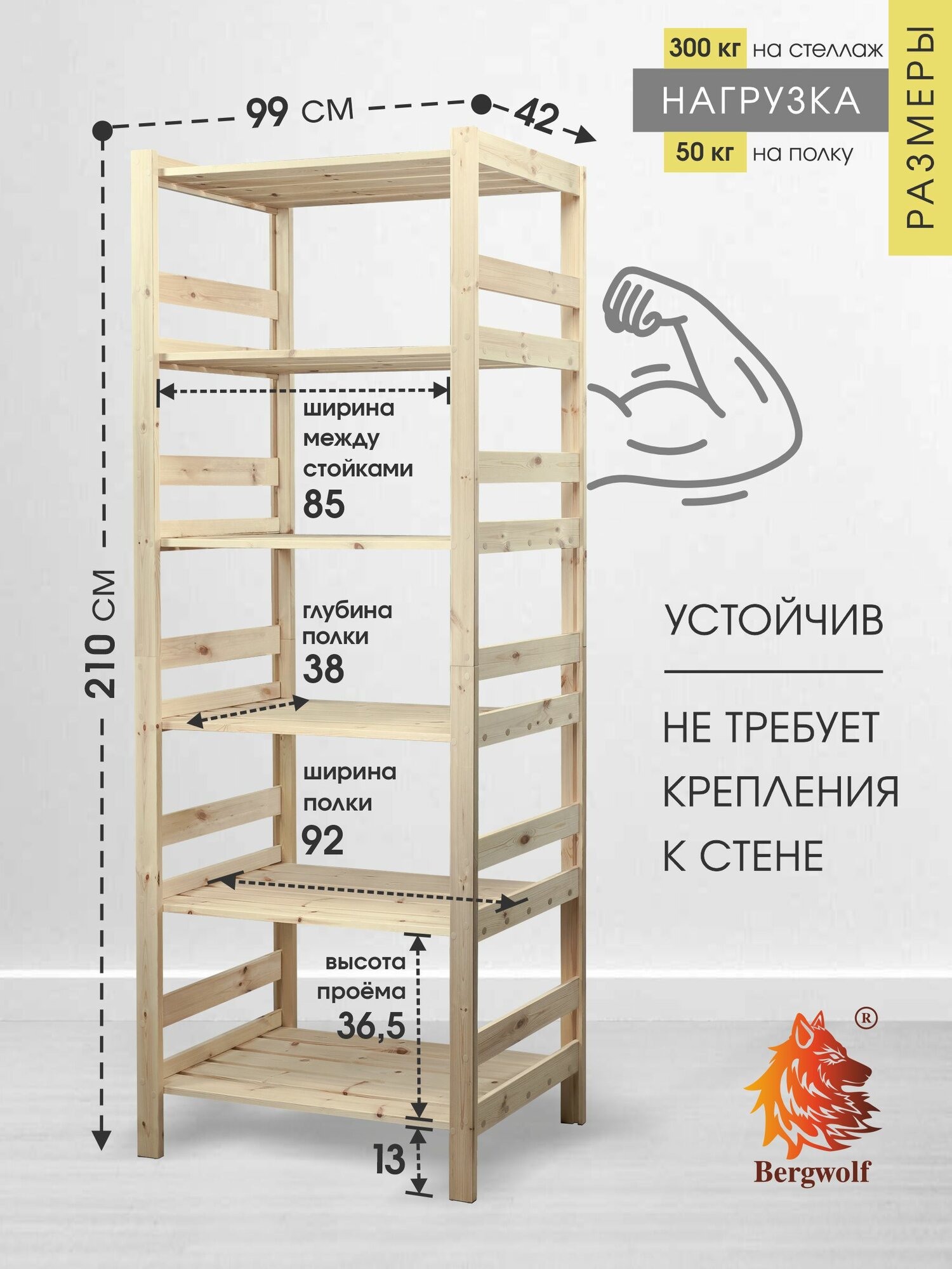 Стеллаж из массива дерева 210х99х42 см, отшлифован, 6 полок, нагрузка 300 кг интересное: