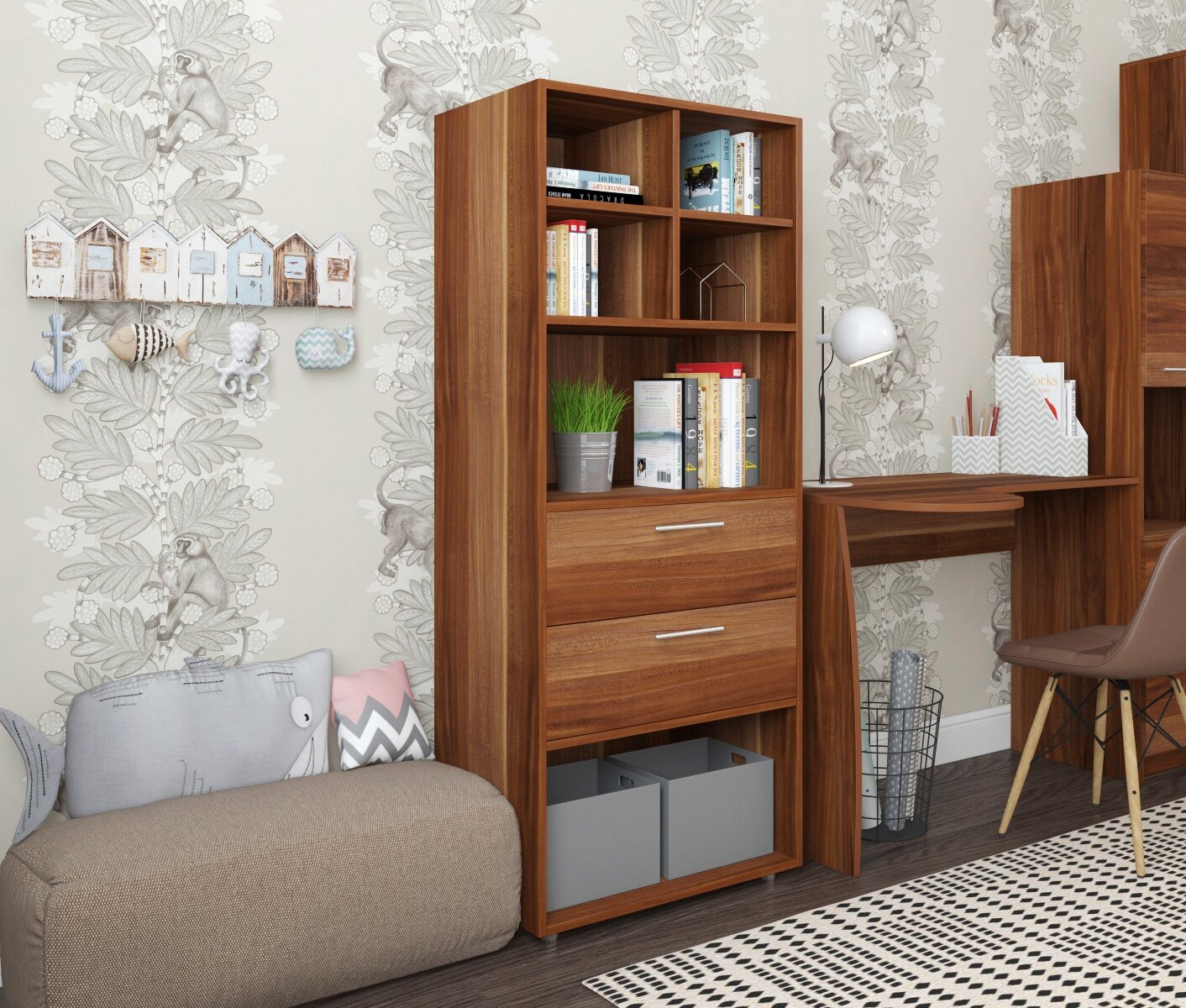 Стеллаж деревянный Нонтон Симпл графит 40.2x51.4x190 см, с ящиками