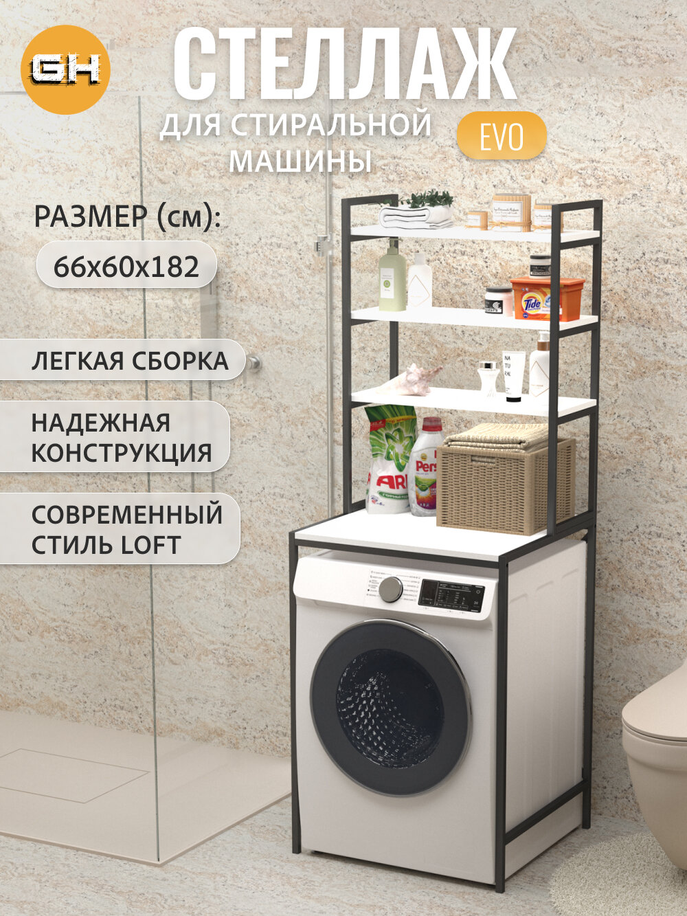 Купить Стеллаж в ванную EVO loft, белый, этажерка для стиральной машины, шкаф для ванной комнаты, 66х60х182 см, гростат