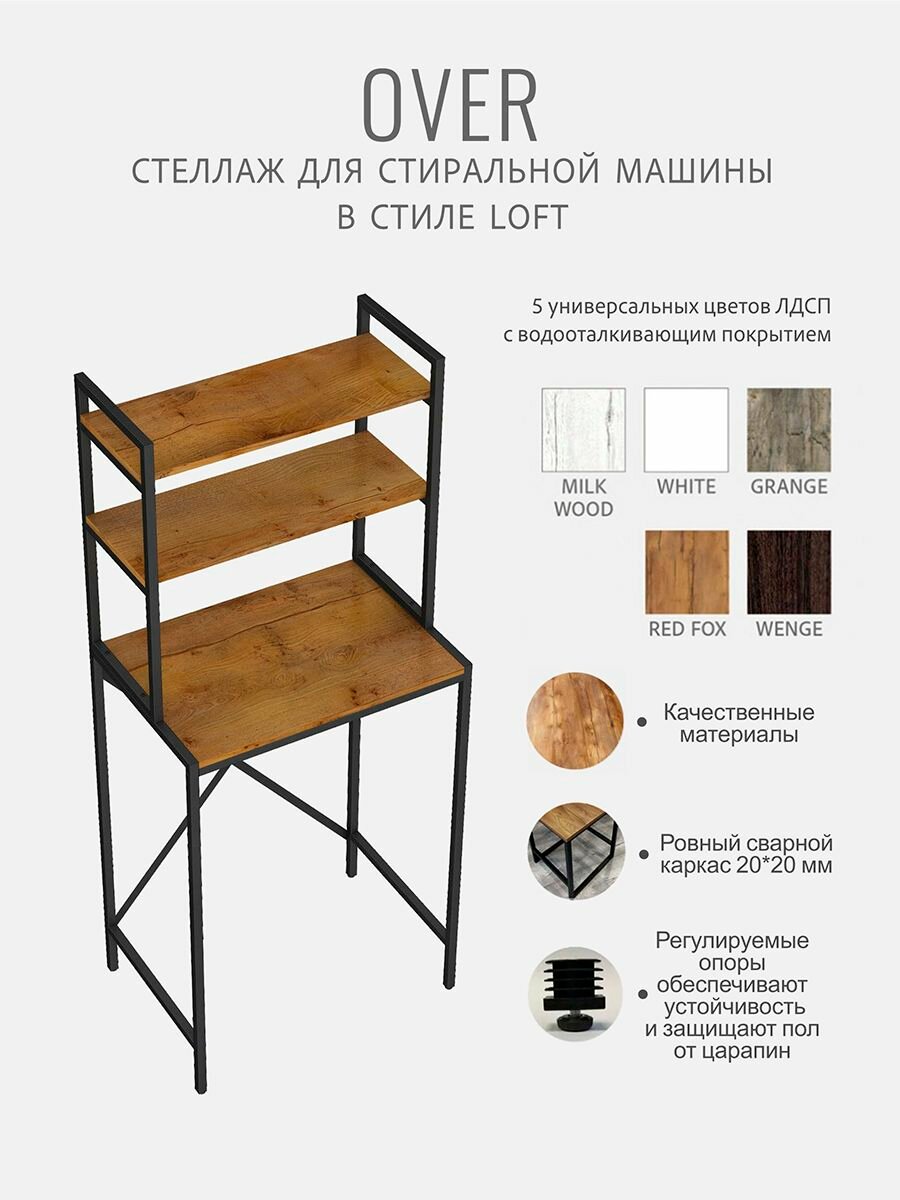 Стеллаж в ванную OVER loft, серый, этажерка для стиральной машины, шкаф для ванной комнаты, 66х45х160 см, гростат