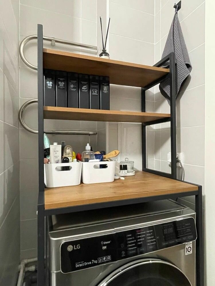 Стеллаж TVATT loft, коричневый, для ванной комнаты, под стиральную машинку, этажерка в ванную, 98х45х92 см, гростат