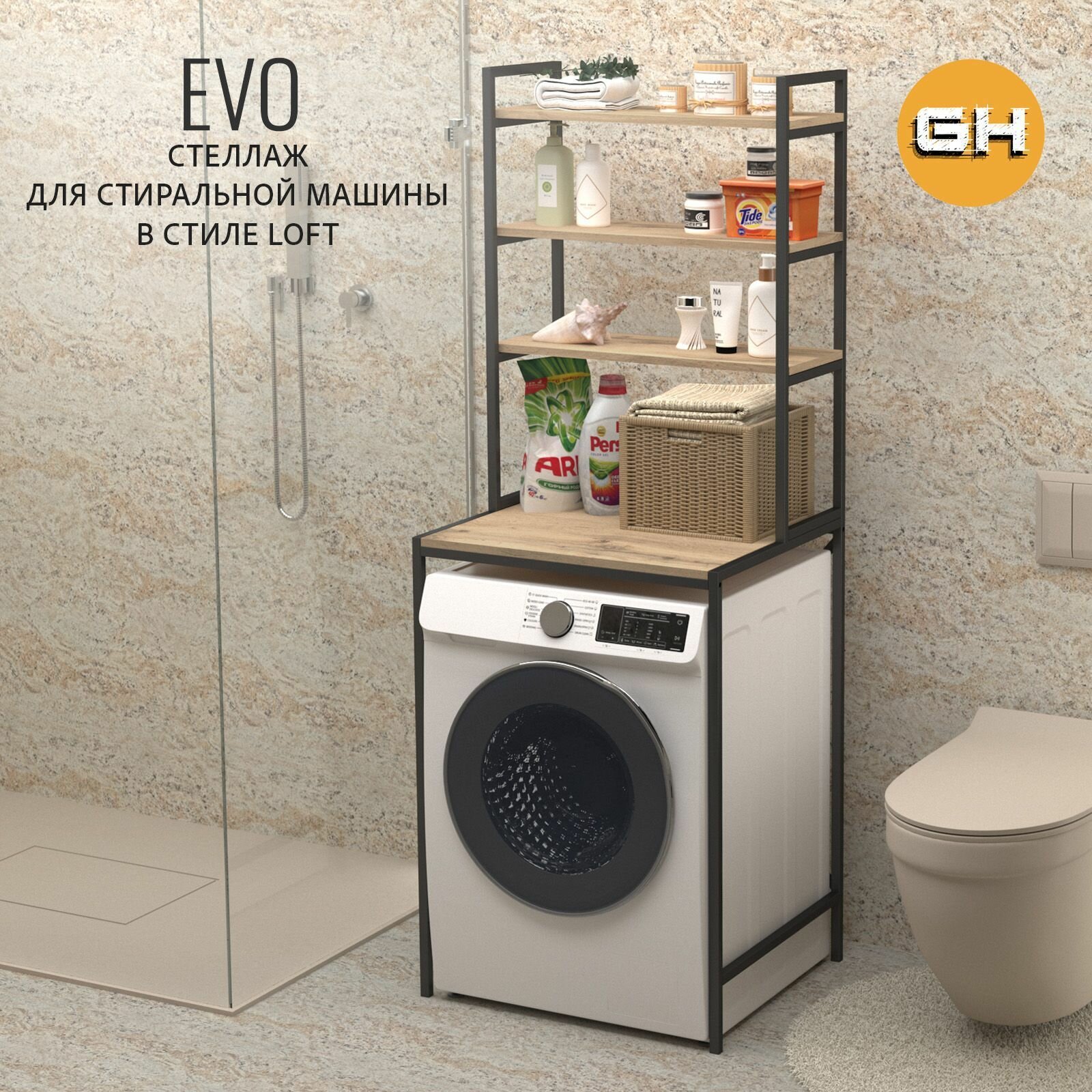 Стеллаж в ванную EVO loft, светло-коричневый, для стиральной машины, шкаф для ванной комнаты, 66х60х182 см, ГРОСТАТ