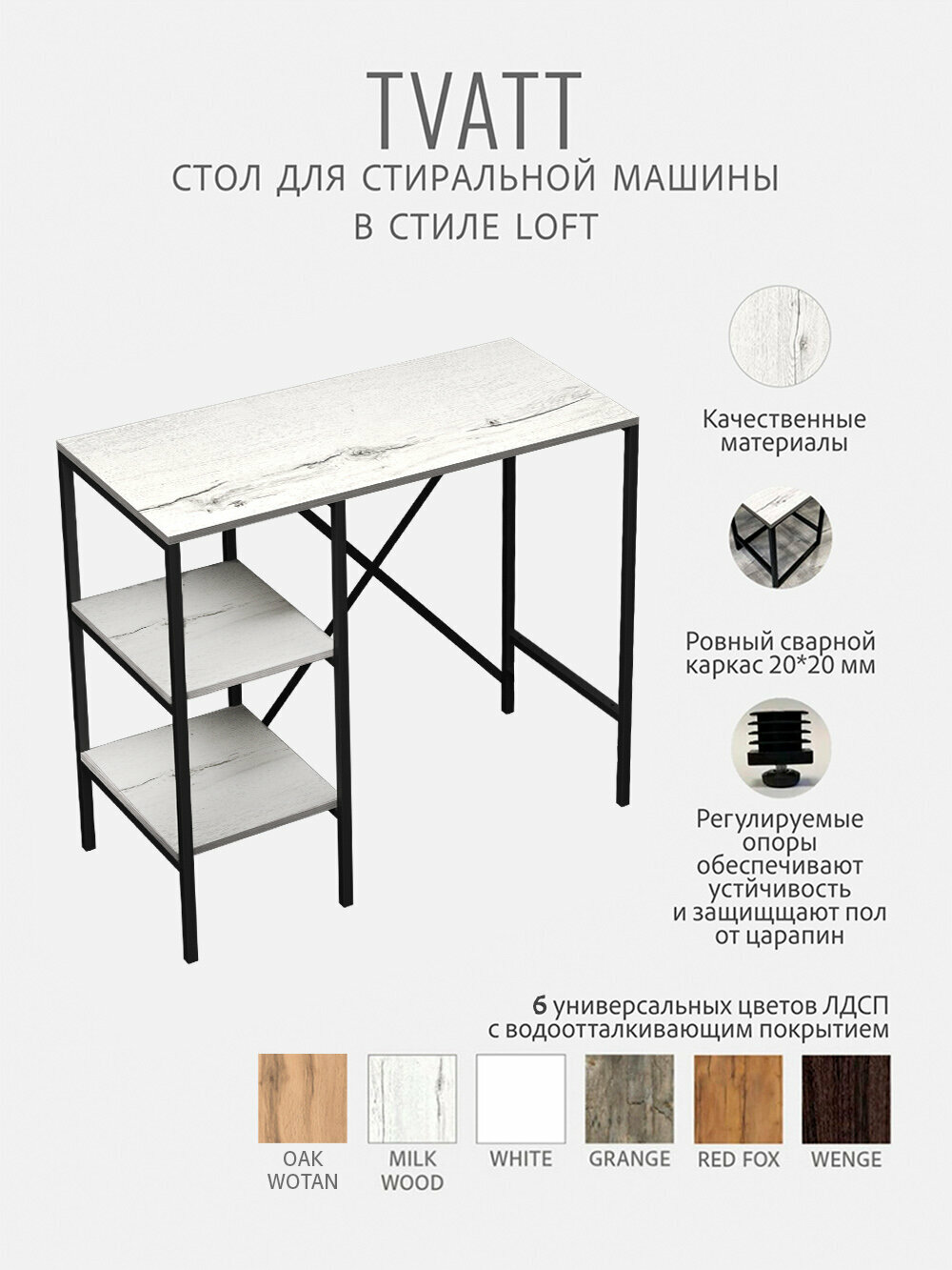 Стеллаж TVATT loft, белый, для ванной комнаты, под стиральную машинку, этажерка в ванную, 98х45х92 см, гростат