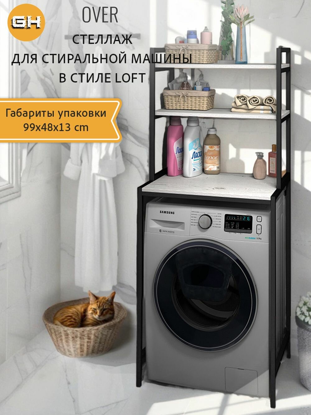Стеллаж для стиральной машинки в ванную комнату