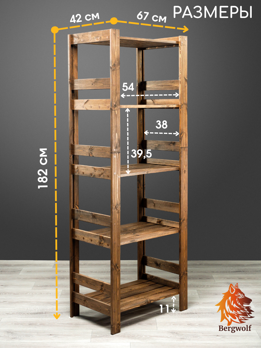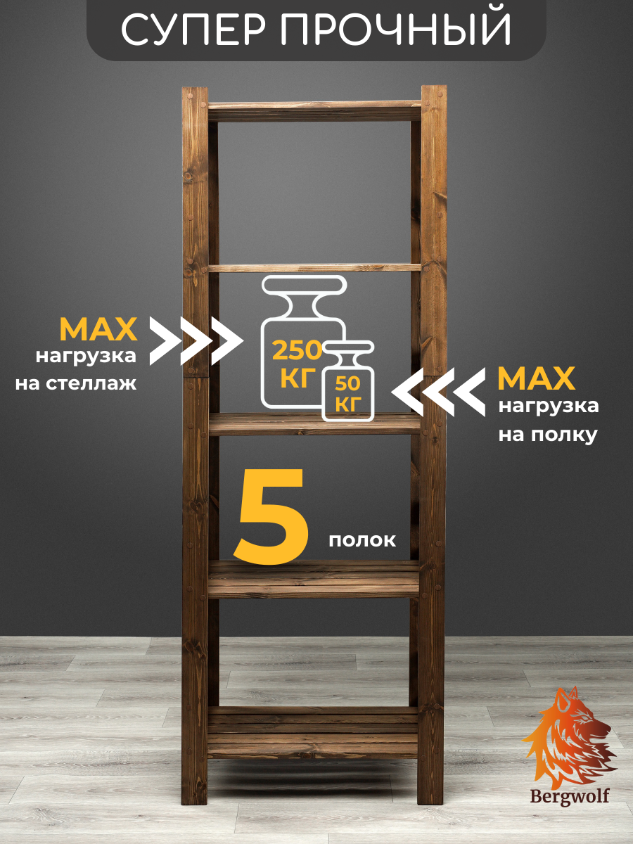 Стеллаж деревянный 182х67х42 см, отшлифован, покрыт защитным премиум маслом, 5 полок, нагрузка 250 кг интересное: