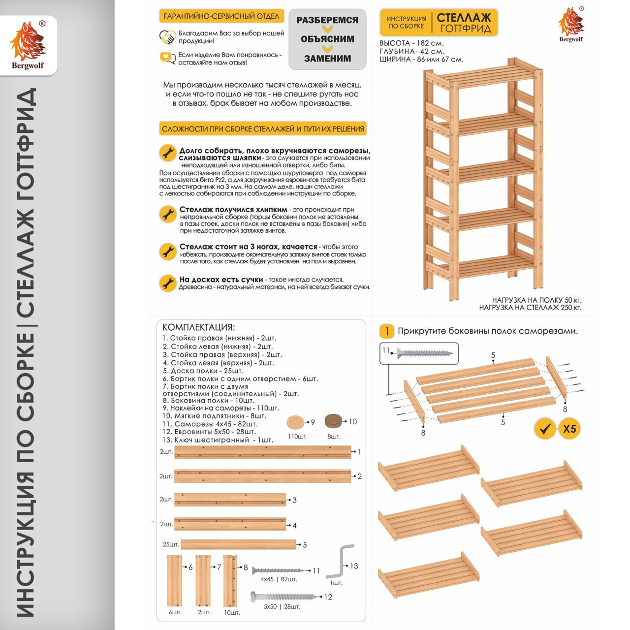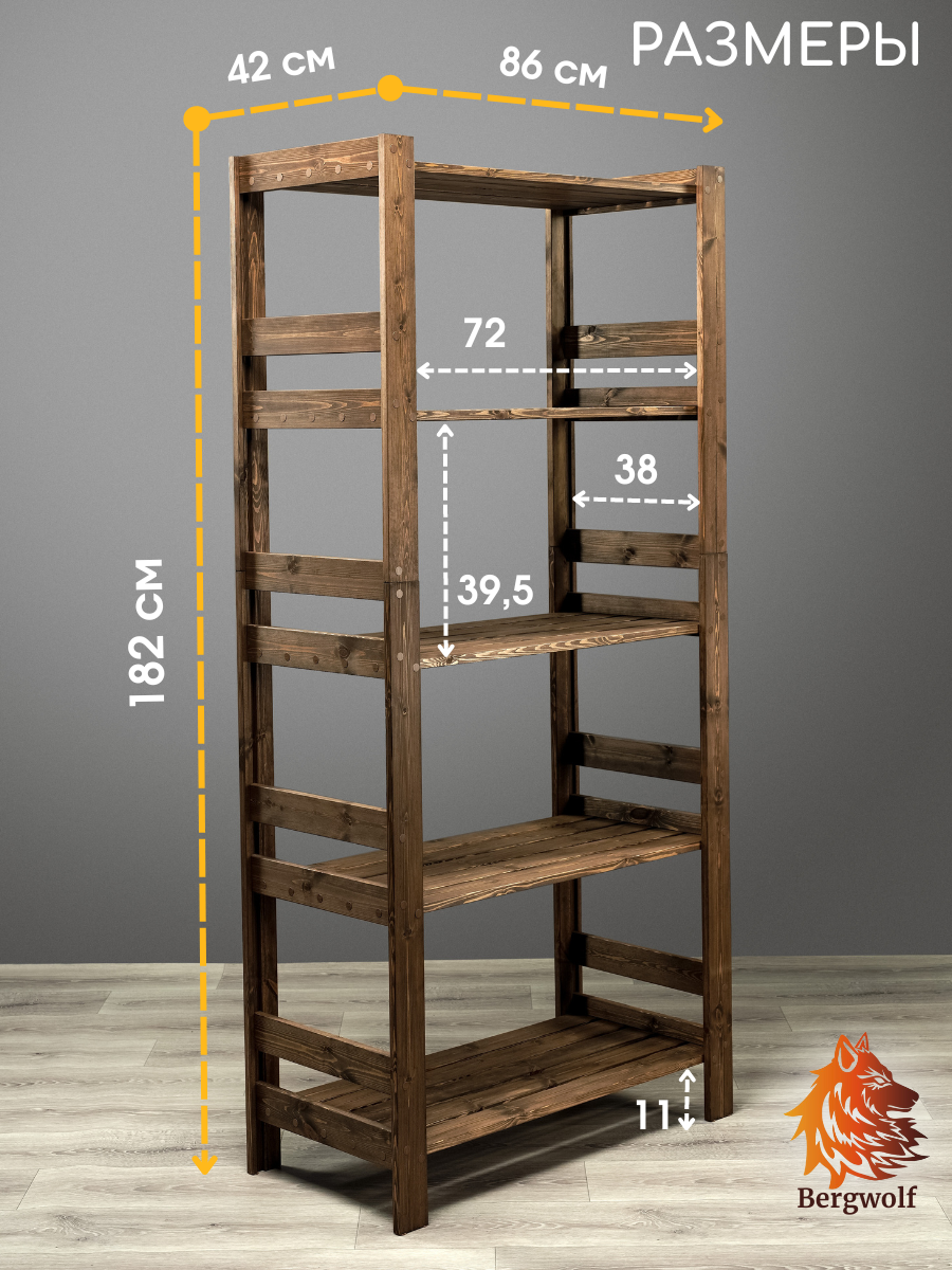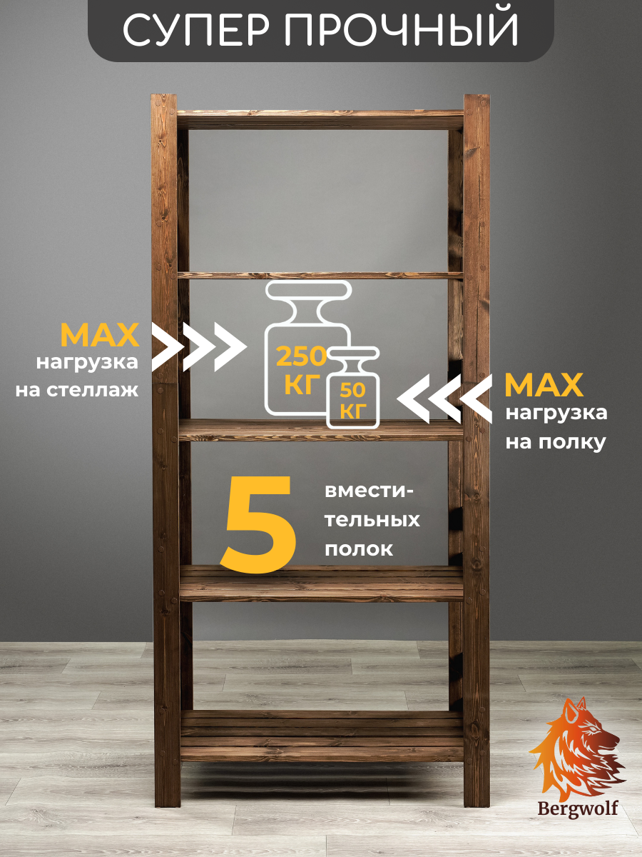 Стеллаж деревянный 182х86х42 см, отшлифован, покрыт защитным премиум маслом, 5 полок, нагрузка 250 кг интересное: