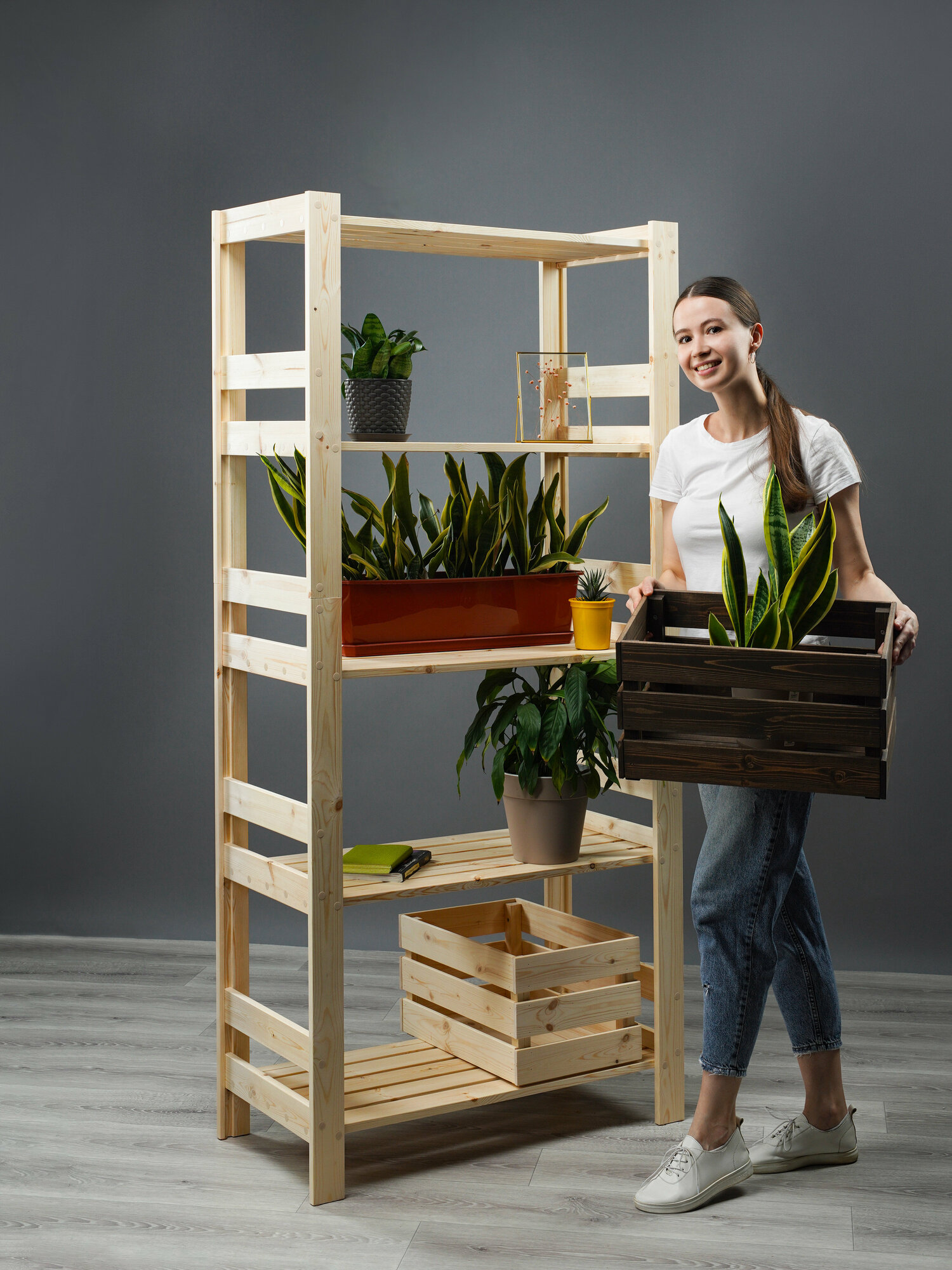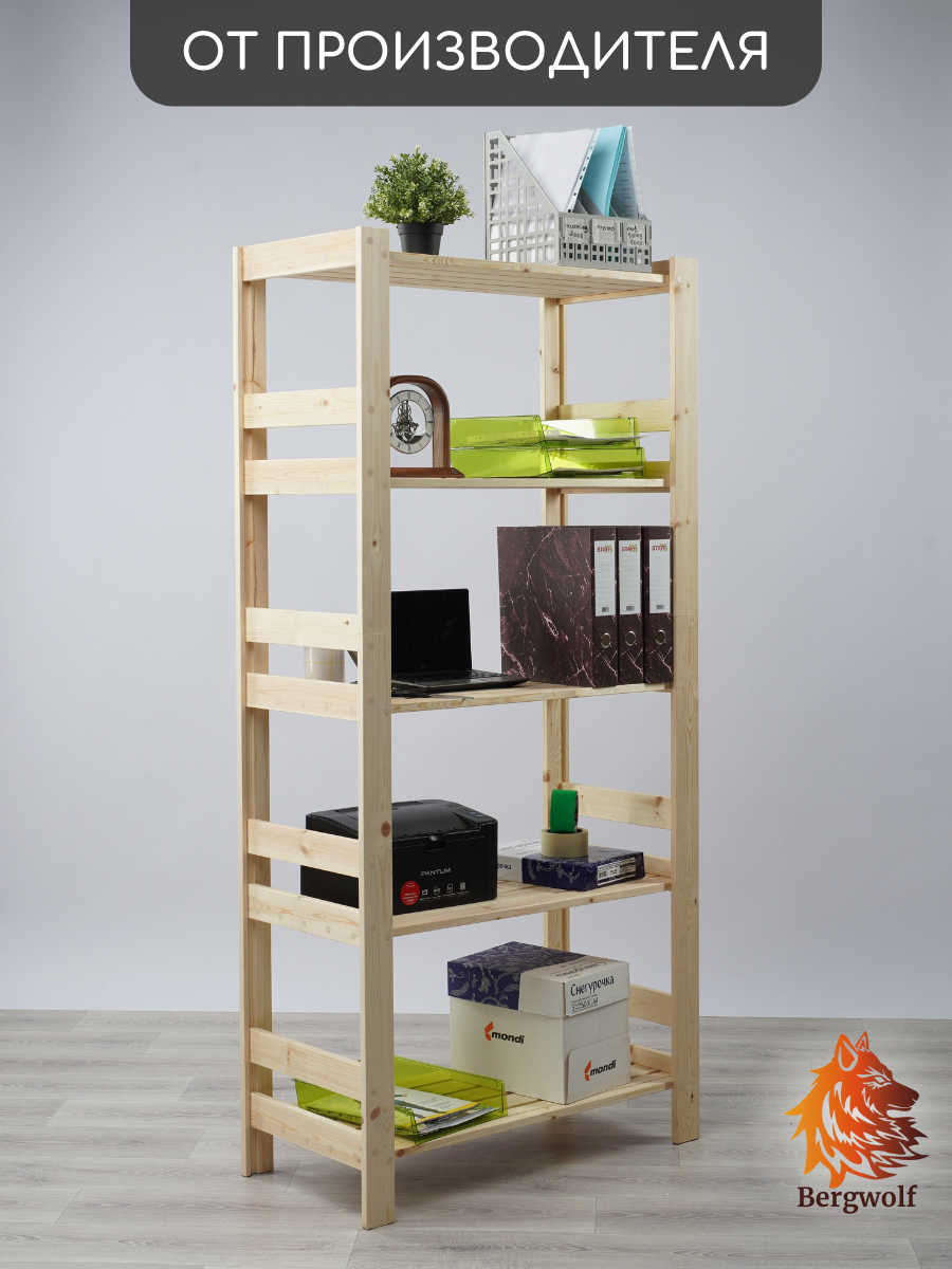 Стеллаж деревянный 182х67х42 см, отшлифован, покрыт защитным премиум маслом, 5 полок, нагрузка 250 кг