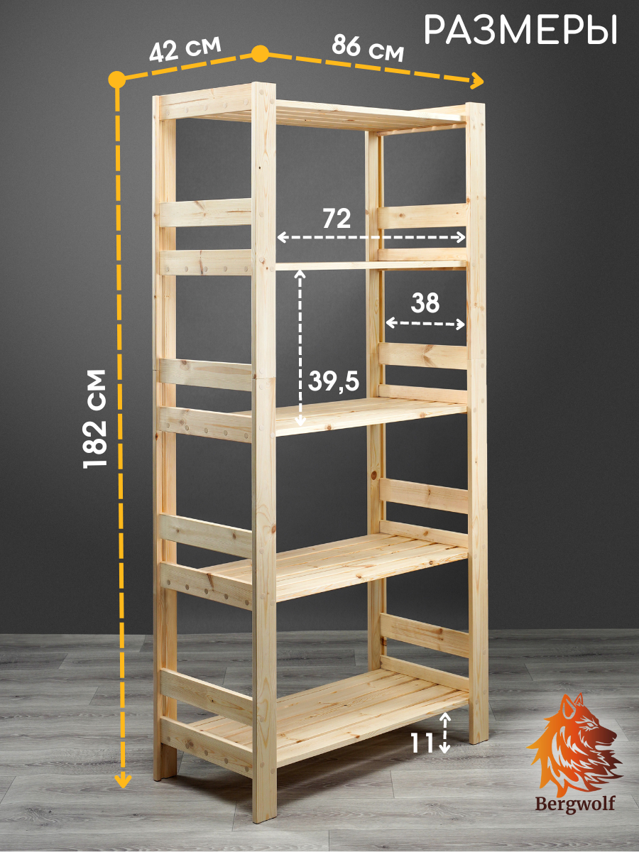 Стеллаж деревянный высокий 182х86х42 см, отшлифован, 5 полок, нагрузка 250 кг интересное: