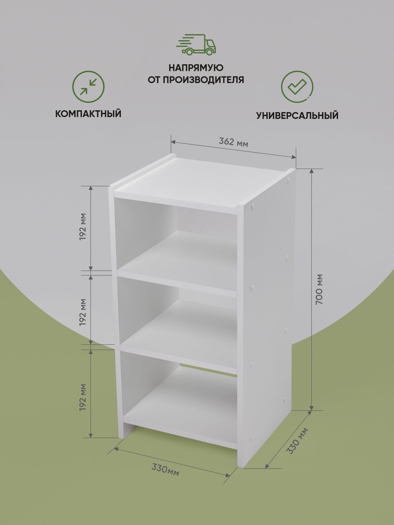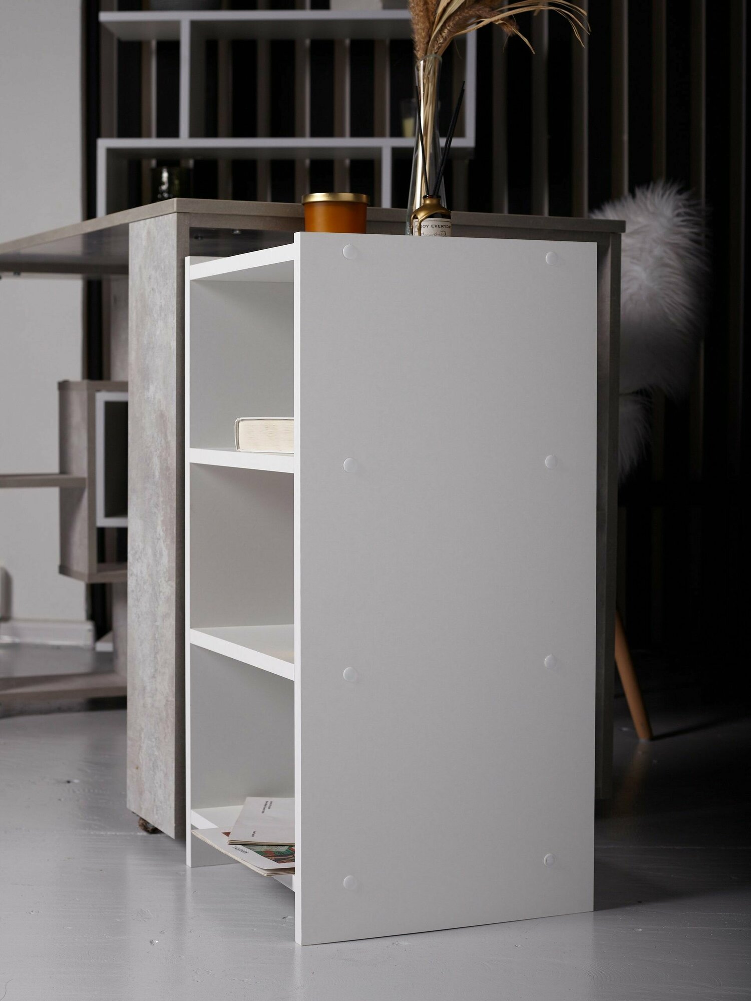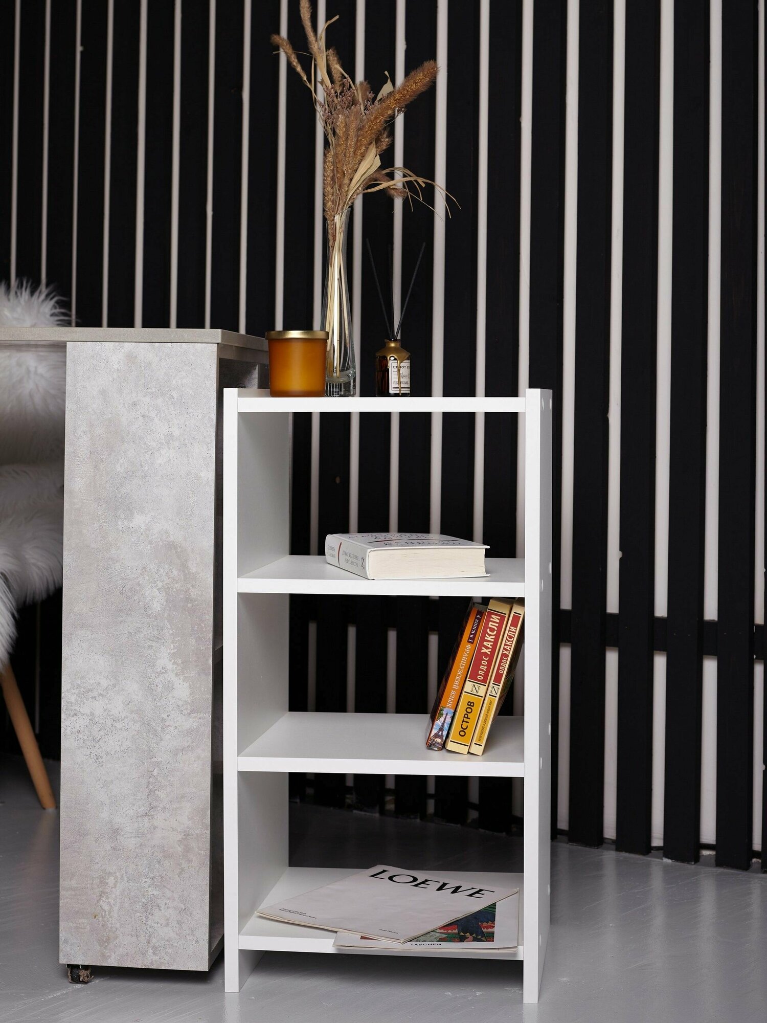 Стеллаж столплит Кито СБ-3240 с ящиками, ЛДСП, белый, 37х34х106 см