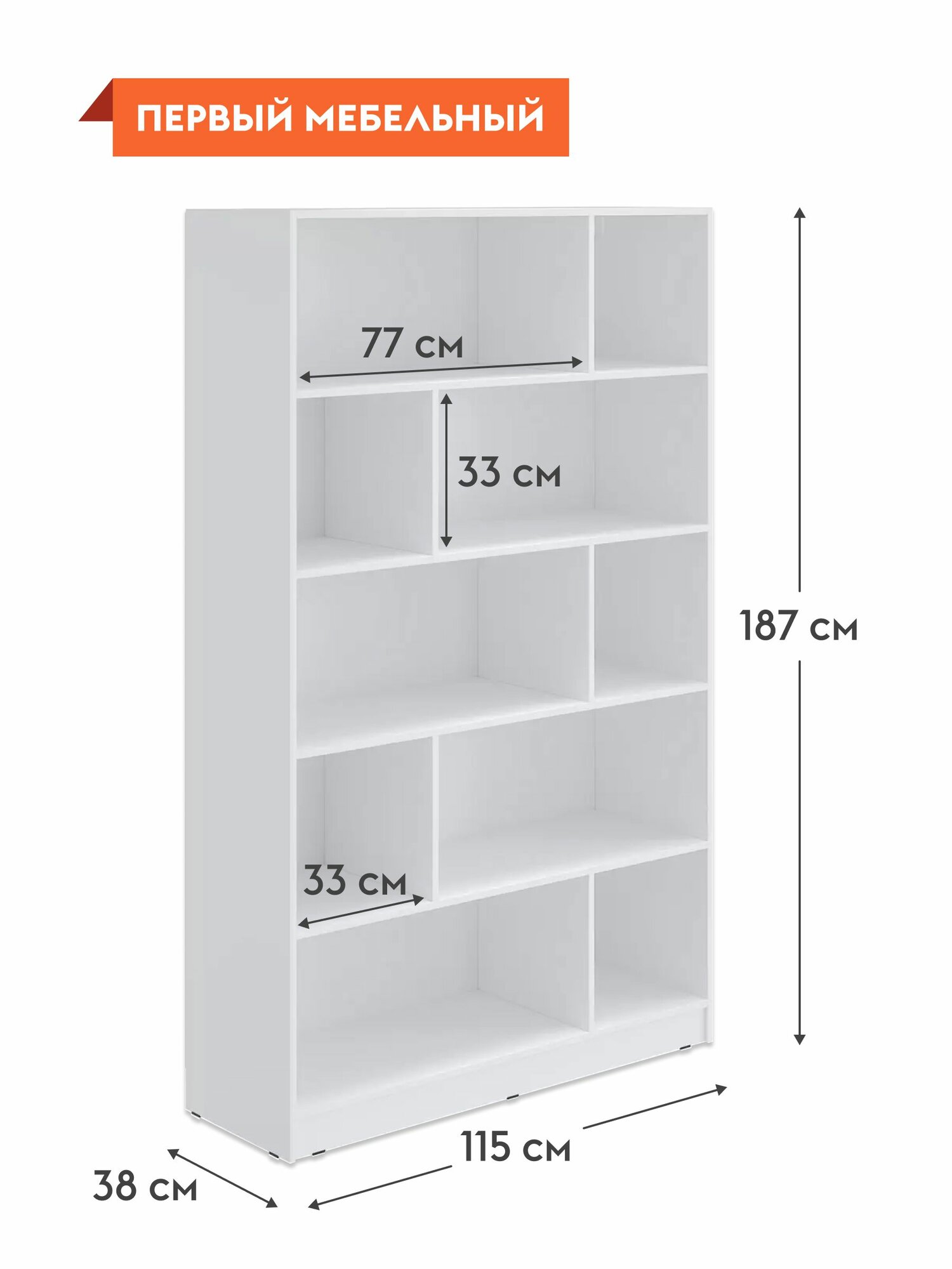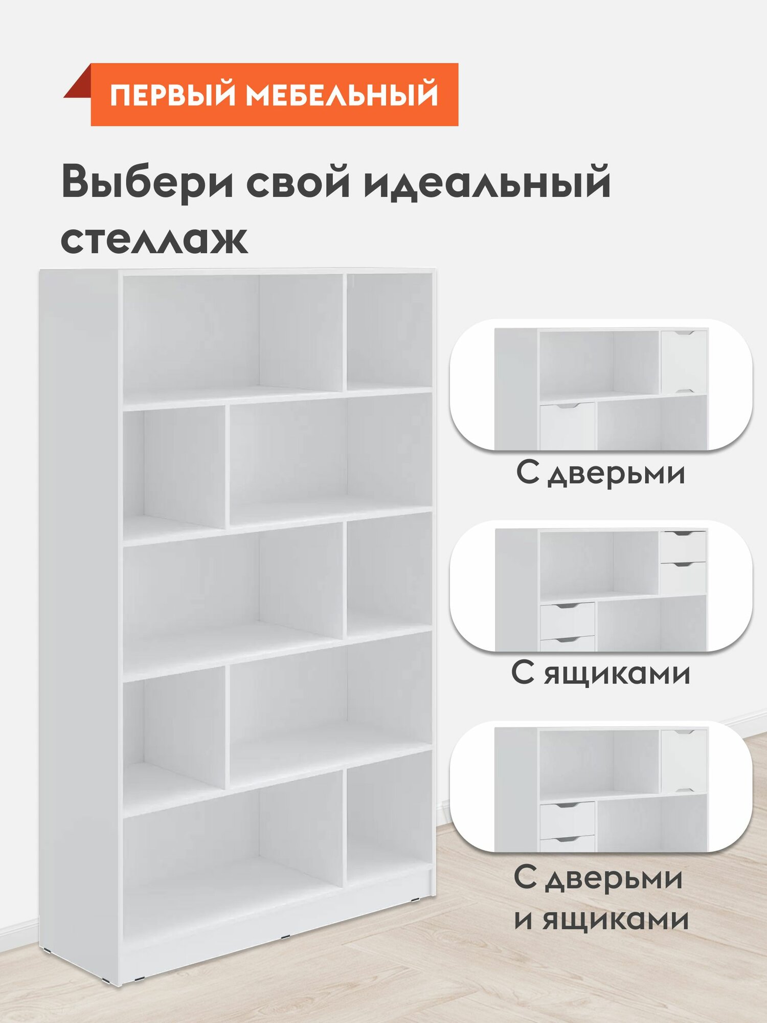 Стеллаж деревянный Юджин напольный с полками, мебель для гостиной и спальни, 115х38х187 см, Белый, Стандарт интересное: