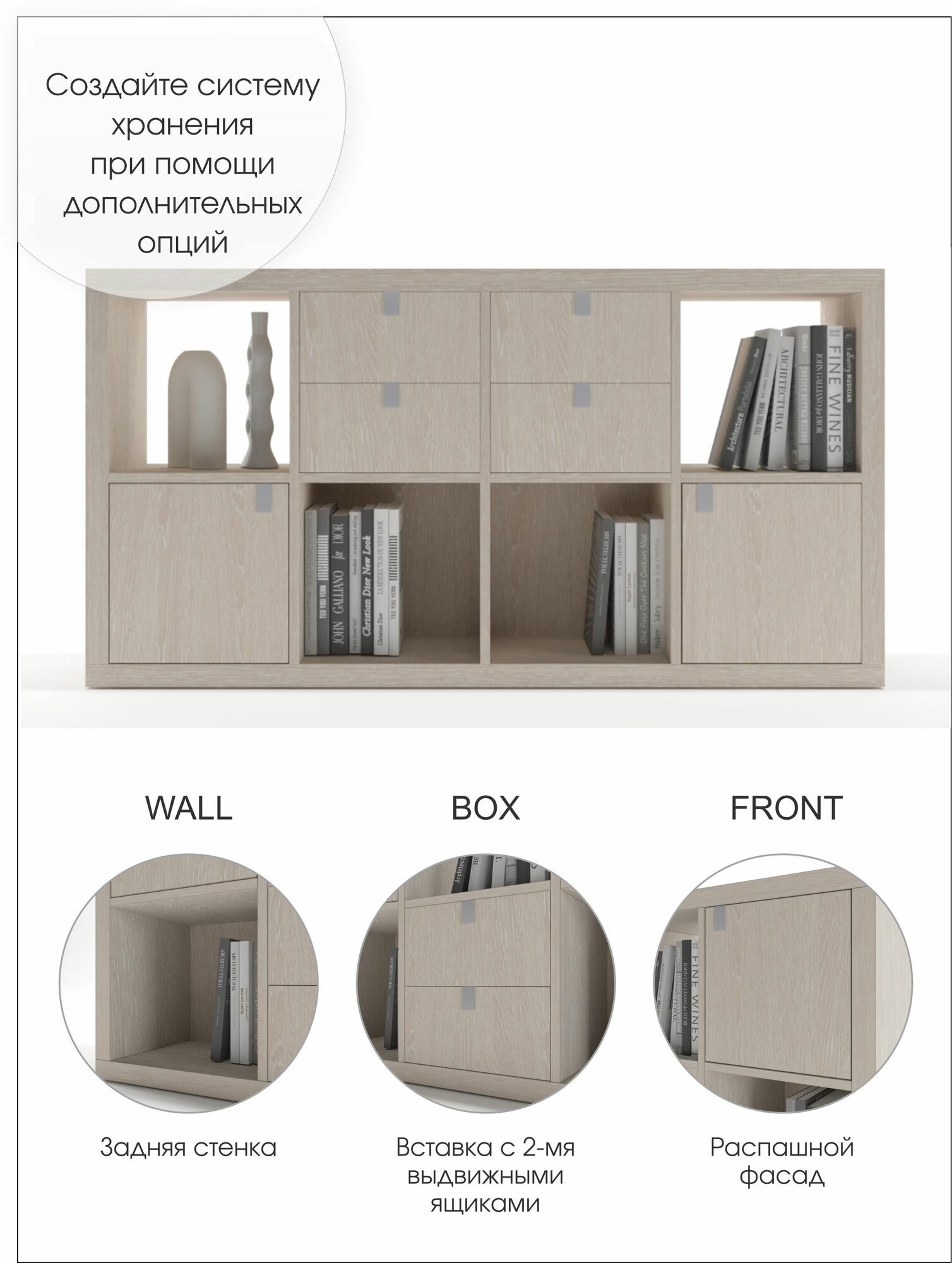 Стеллаж-система хранения PIANO 4x2 1444х752х280 мм, беленый дуб интересное:
