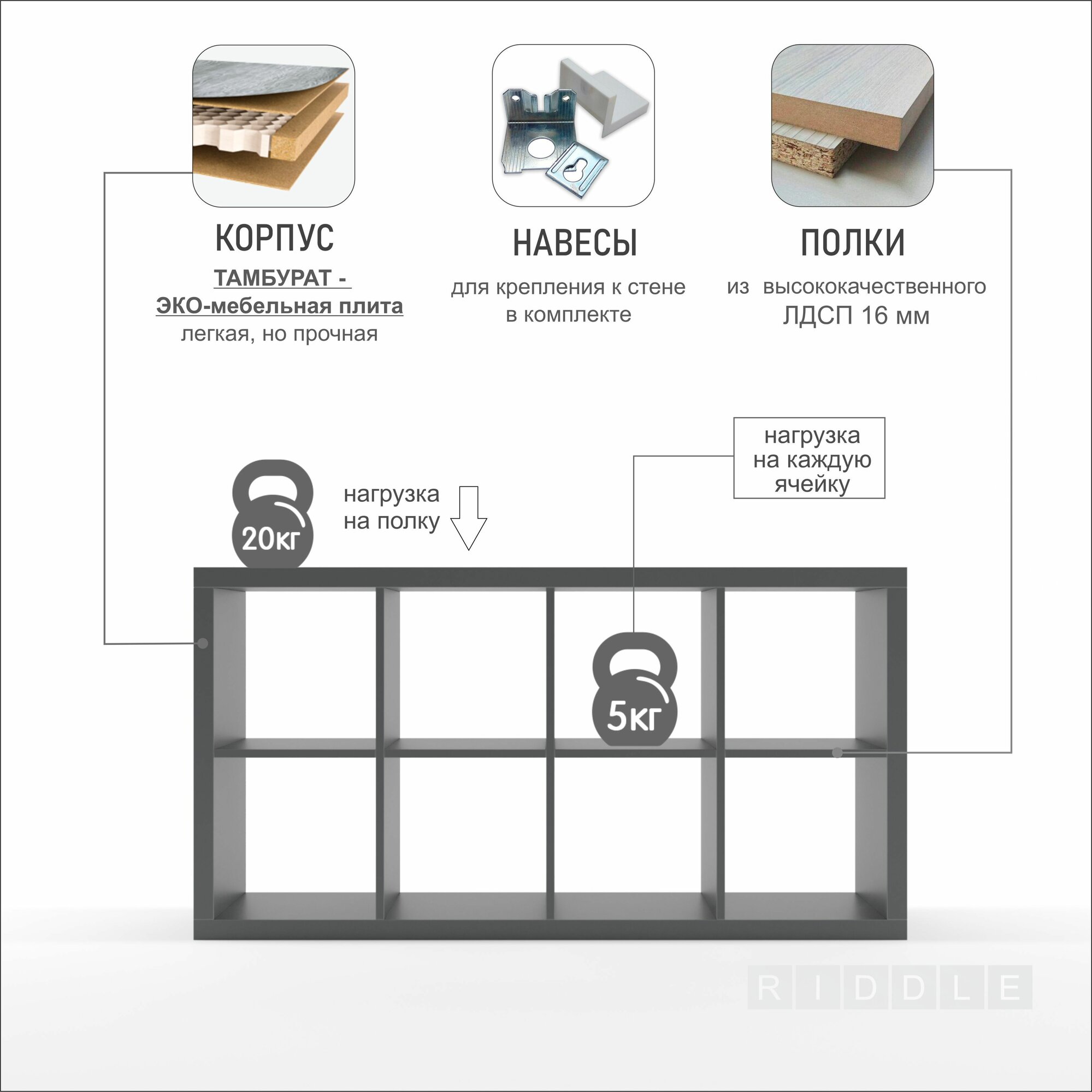 Стеллаж-система хранения PIANO 4x2 1444х752х280 мм, черное дерево