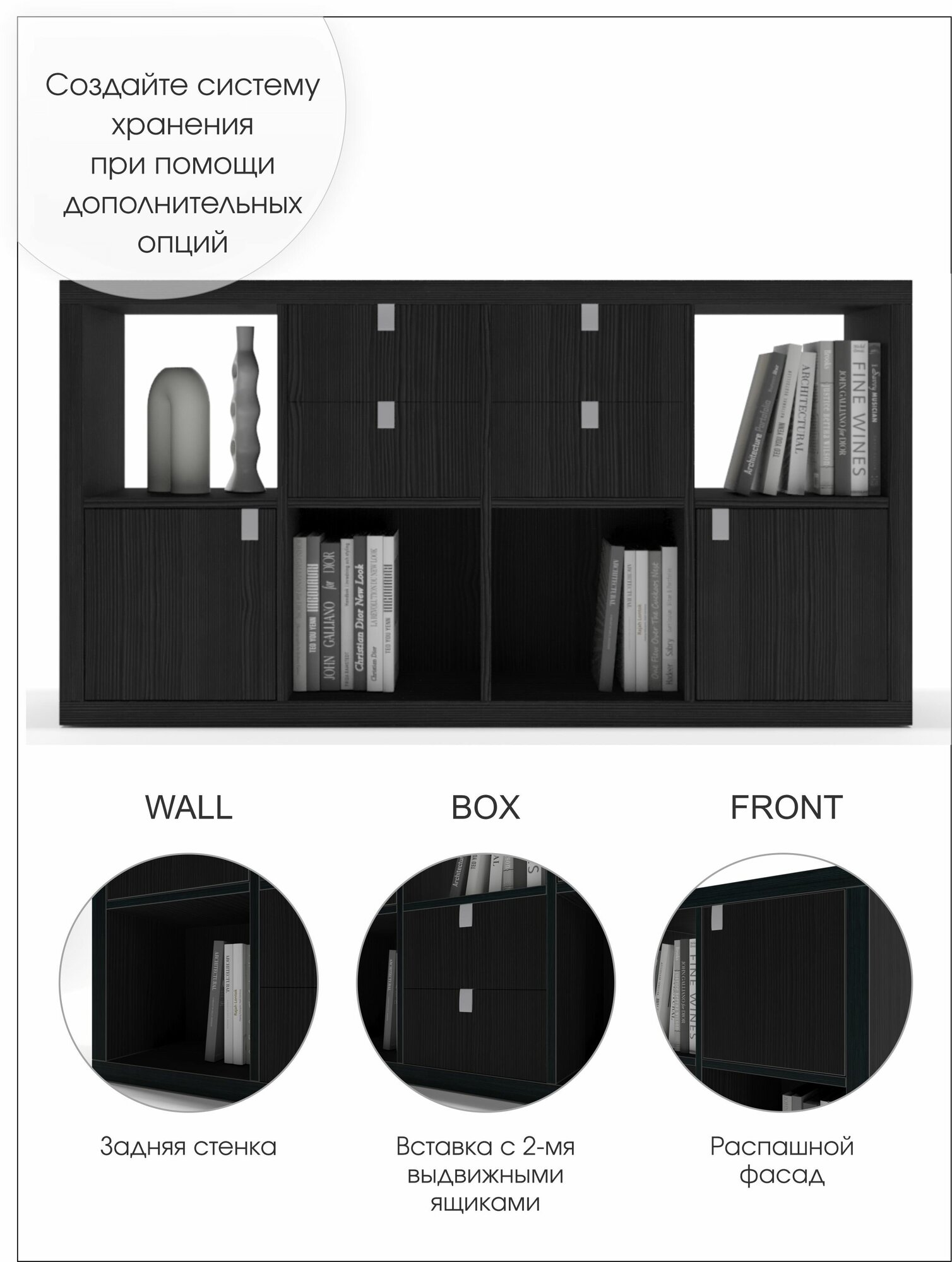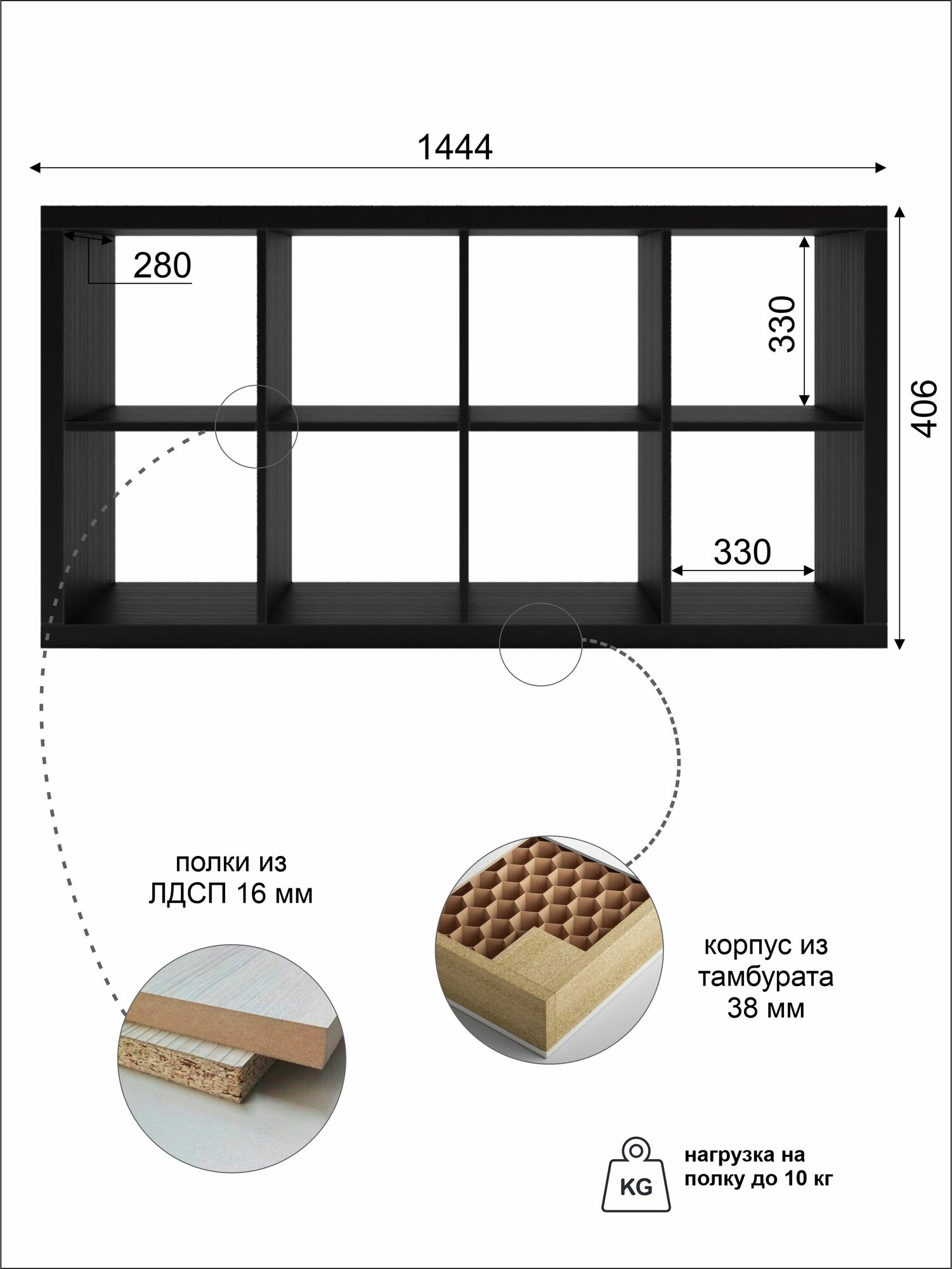 Стеллаж-система хранения PIANO 4x2 1444х752х280 мм, черное дерево интересное:
