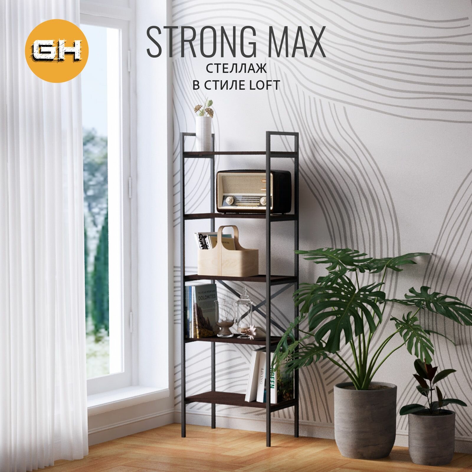 Стеллаж STRONG MAX loft, коричневый, металлический напольный с 5 деревянными полками из ЛДСП, 60.5х35х181 см, гростат