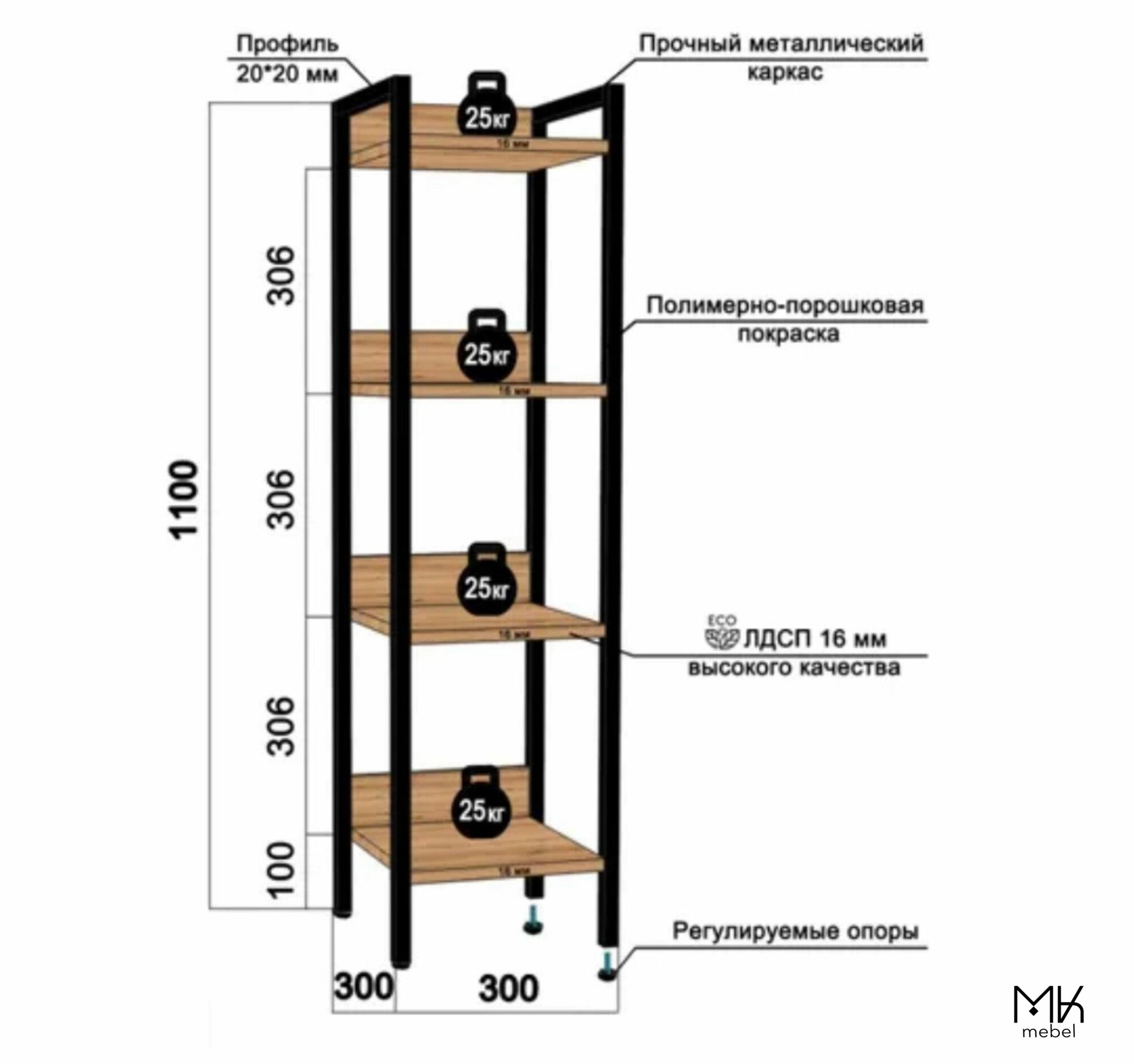 Стеллаж в стиле лофт, 4 полки интересное: