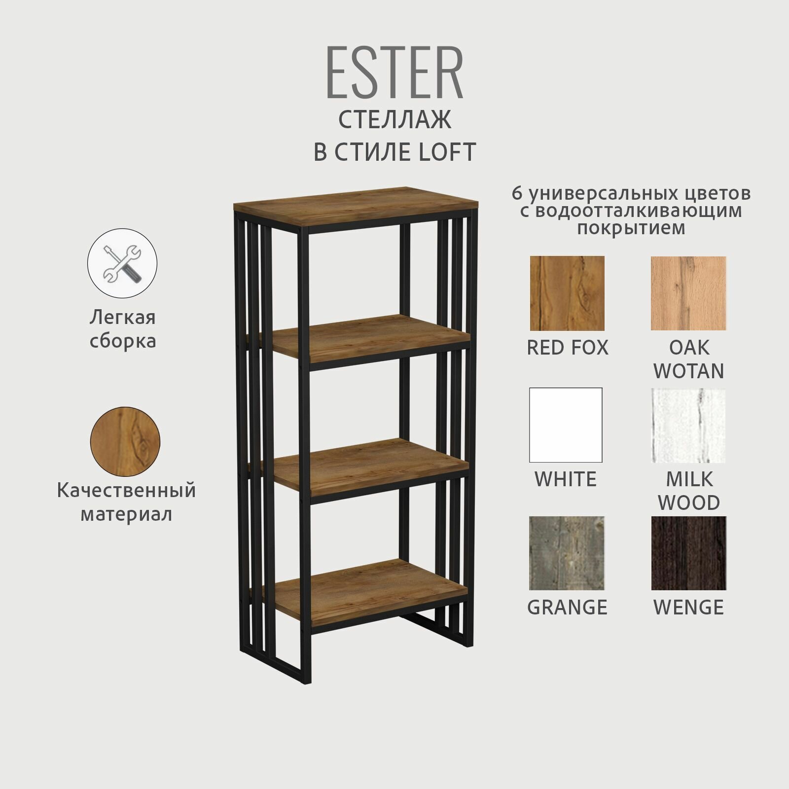 СохранитьСтеллаж ESTER, коричневый, напольный металлический с 4-мя полками в стиле лофт, 50х30х111.6 см, гростат интересное: