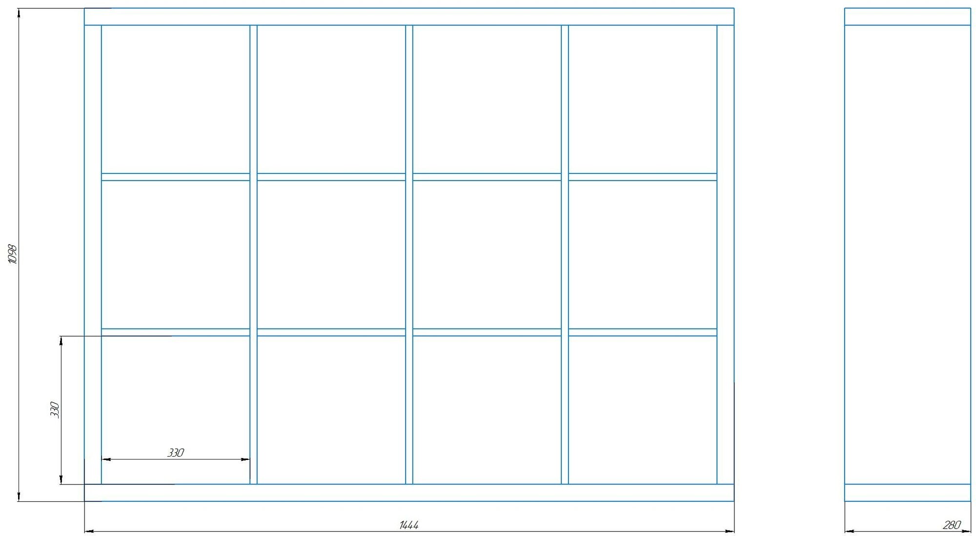 Стеллаж -система хранения PIANO 4x3 1444х1098х280мм, черное дерево