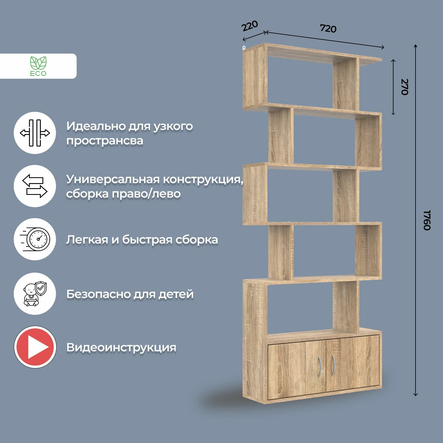 Стеллаж для гостиной и детской, дуб сонома, 72х22х176, ЛДСП интересное: