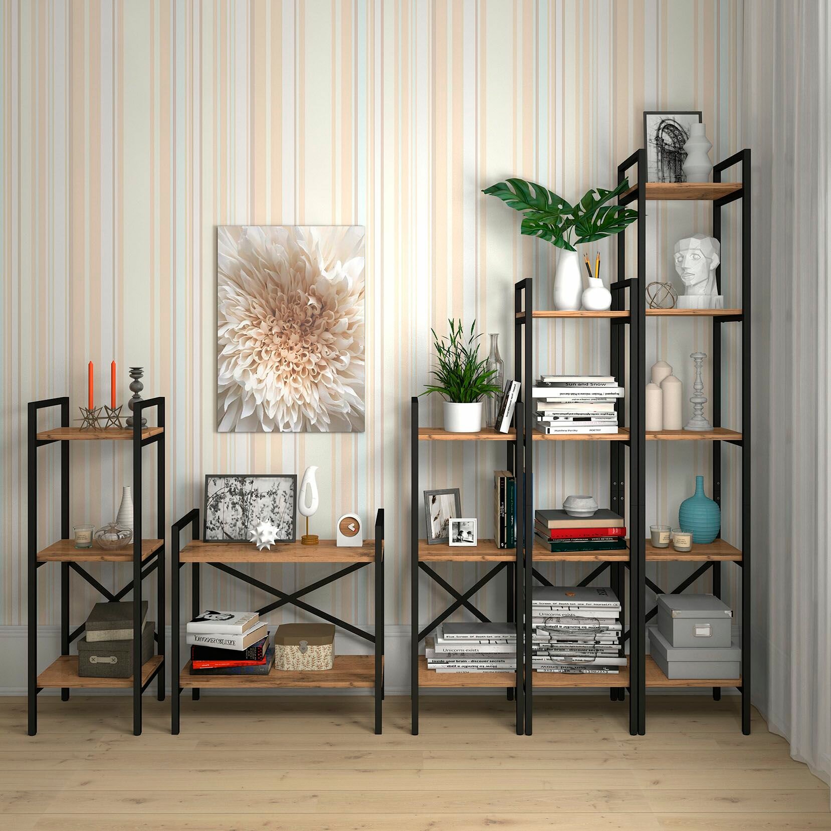 Купить Стеллаж HYLLA HOG, дуб вотан, напольный, модульный шкаф с 5 деревянными полками, 179,4х34х30 см, гростат