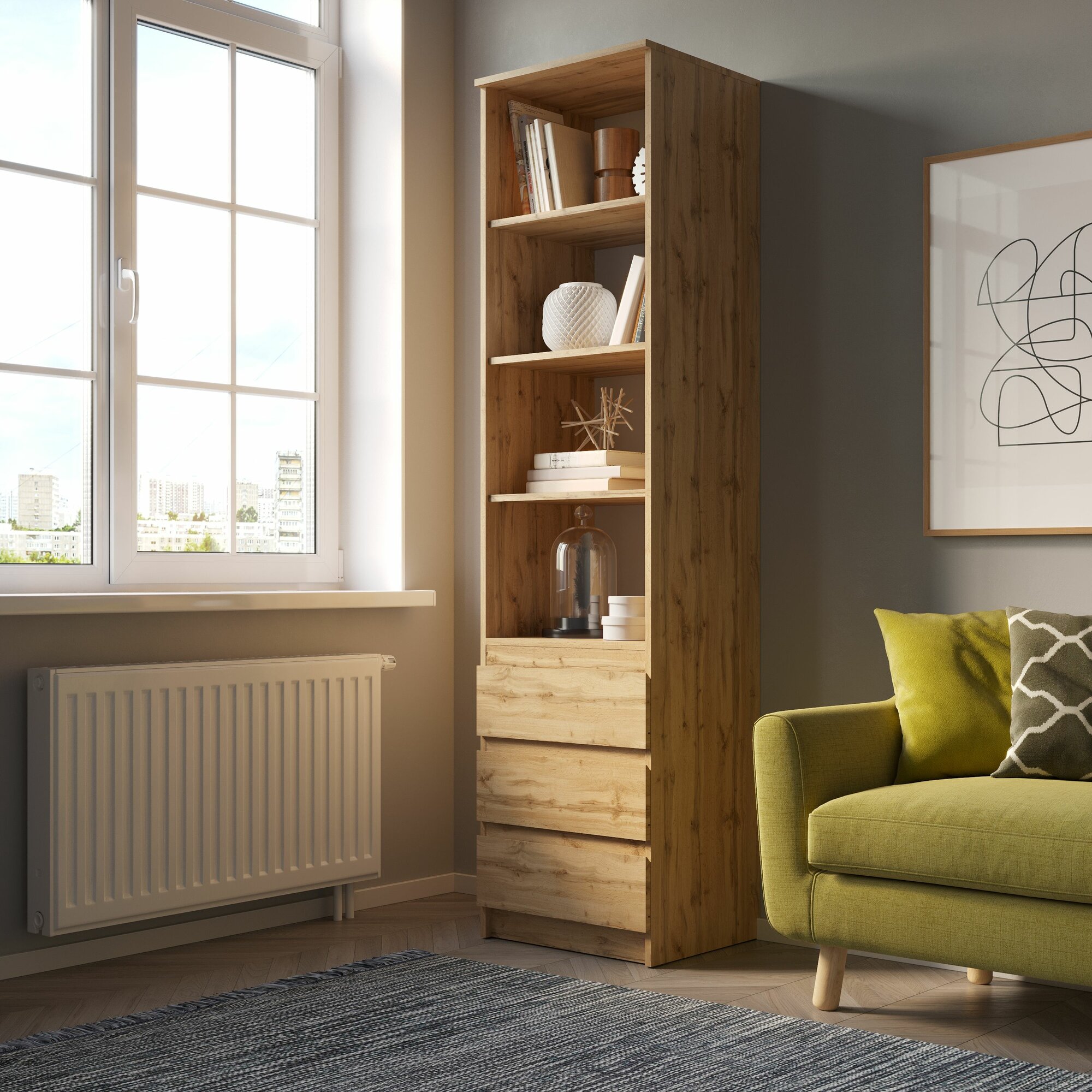 Купить Стеллаж с полками и выдвижными ящиками STARK СТЯ-1, Дуб Вотан, (ВхШхГ) 50,1 х 200,3 х 43,3 см