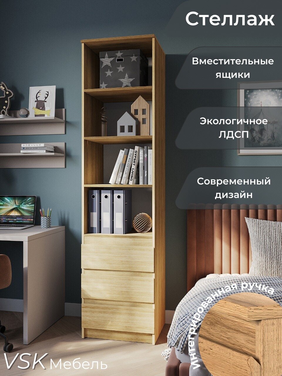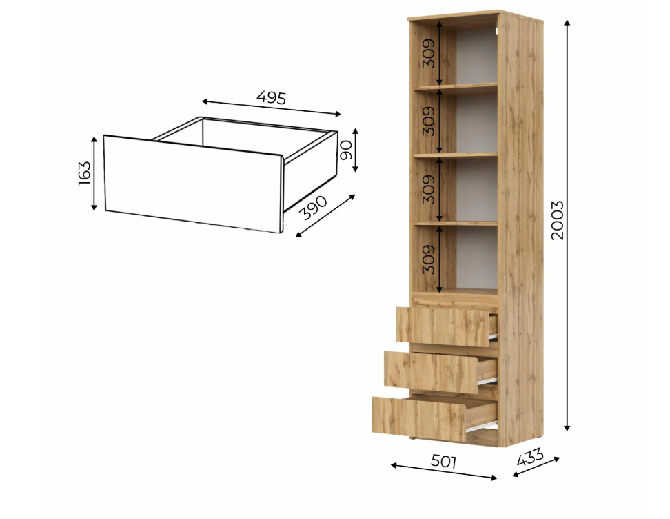 Стеллаж с полками и выдвижными ящиками STARK СТЯ-1, Дуб Вотан, (ВхШхГ) 50,1 х 200,3 х 43,3 см интересное: