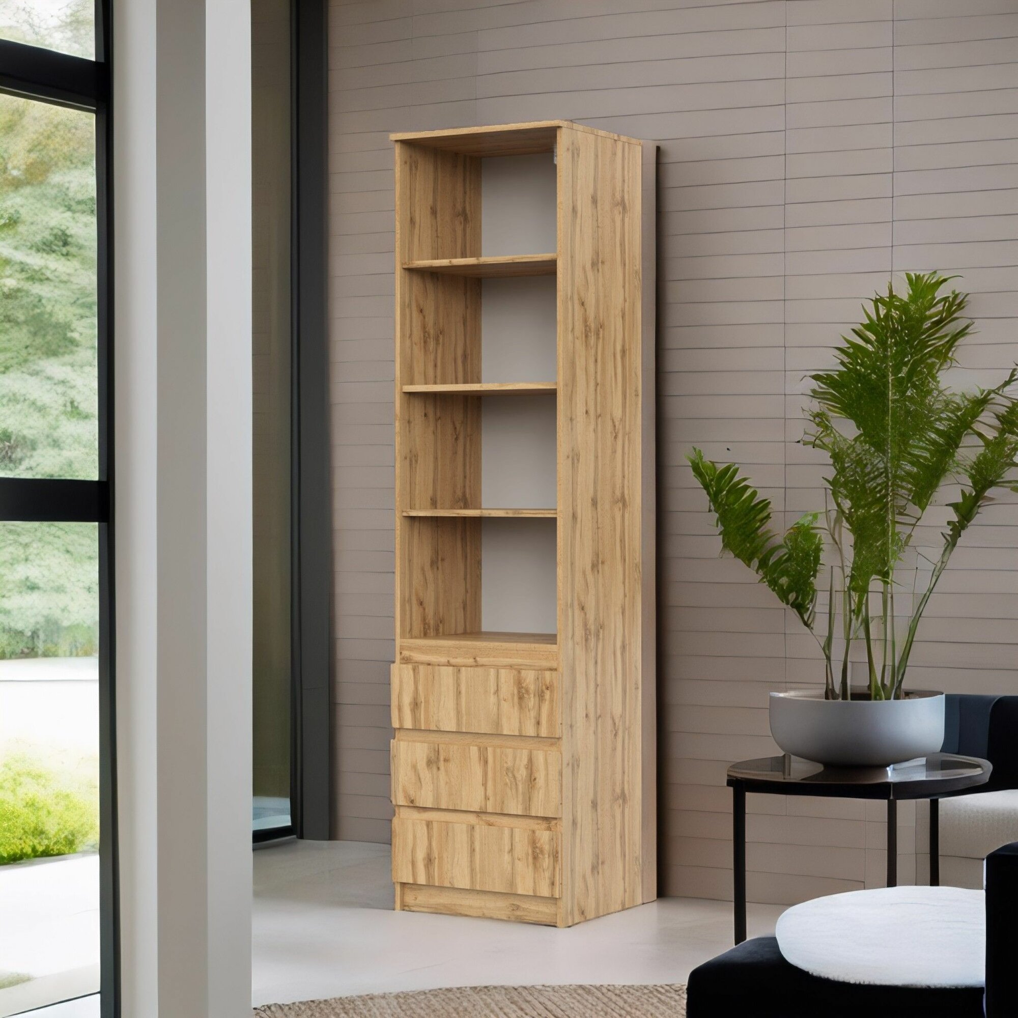 Стеллаж деревянный Нонтон Симпл графит 40.2x51.4x190 см, с ящиками