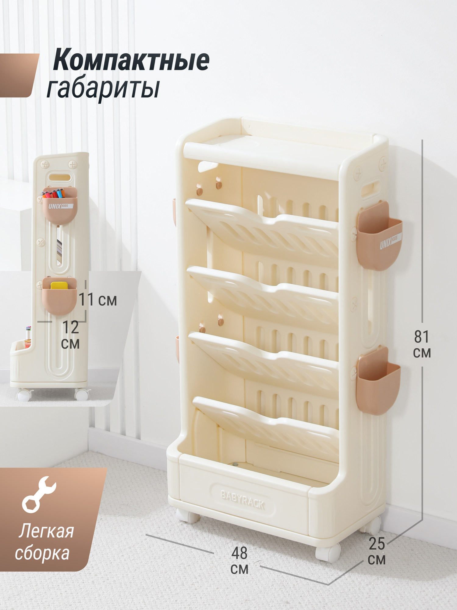 СохранитьДетский стеллаж для книг UNIX Kids Babyrack 4 полки, органайзер для учебников, тетрадей и канцелярии, тумба для игрушек интересное: