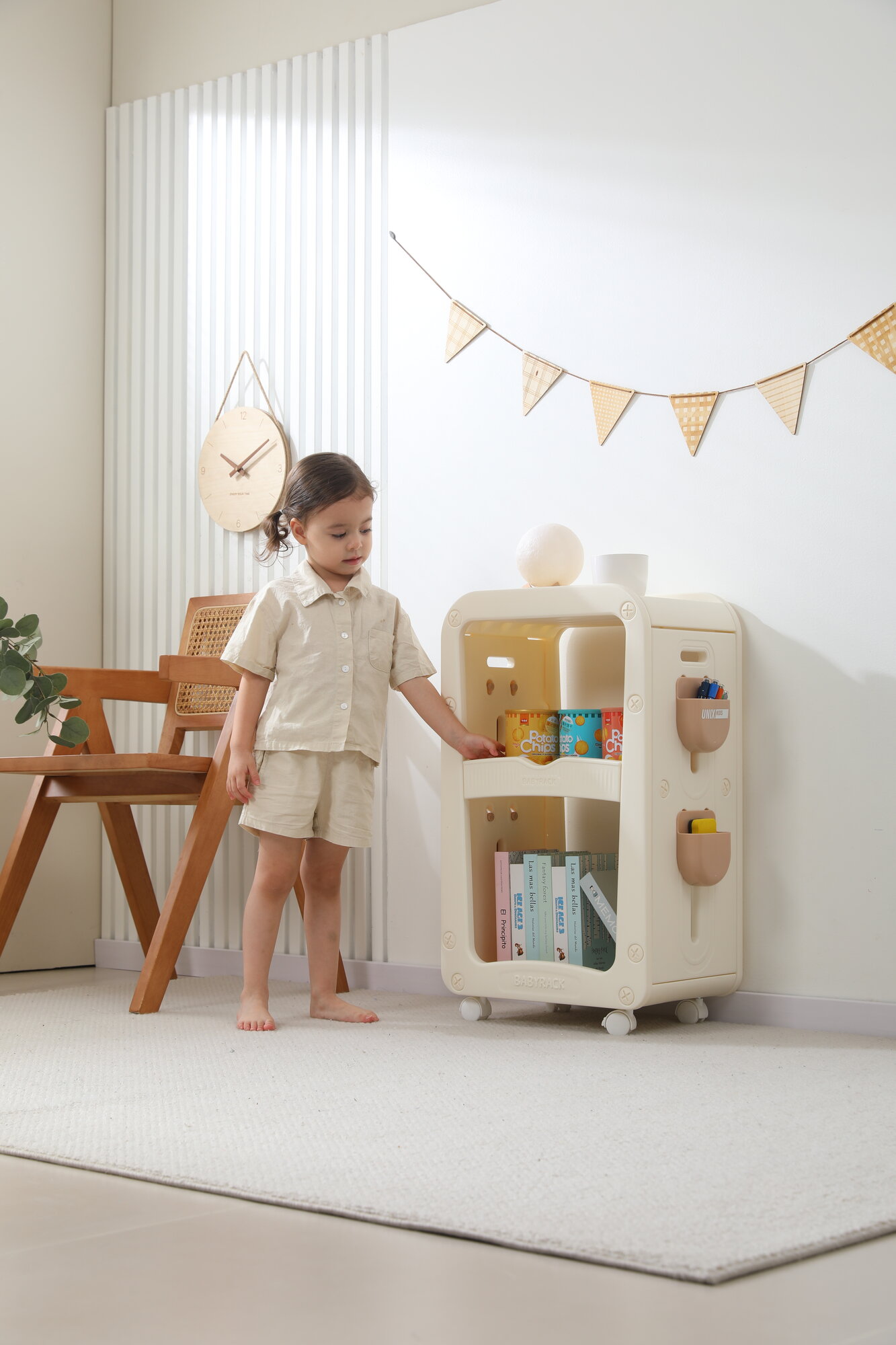 Детский стеллаж для книг UNIX Kids Storagebox 3 полки органайзер напольный 78 см, тумба для игрушек в детскую