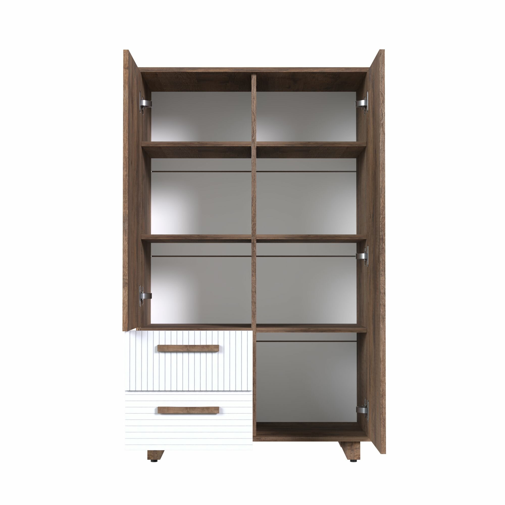 Стеллаж Копенгаген без стекла ЛДСП Белый / МДФ Мускатный орех