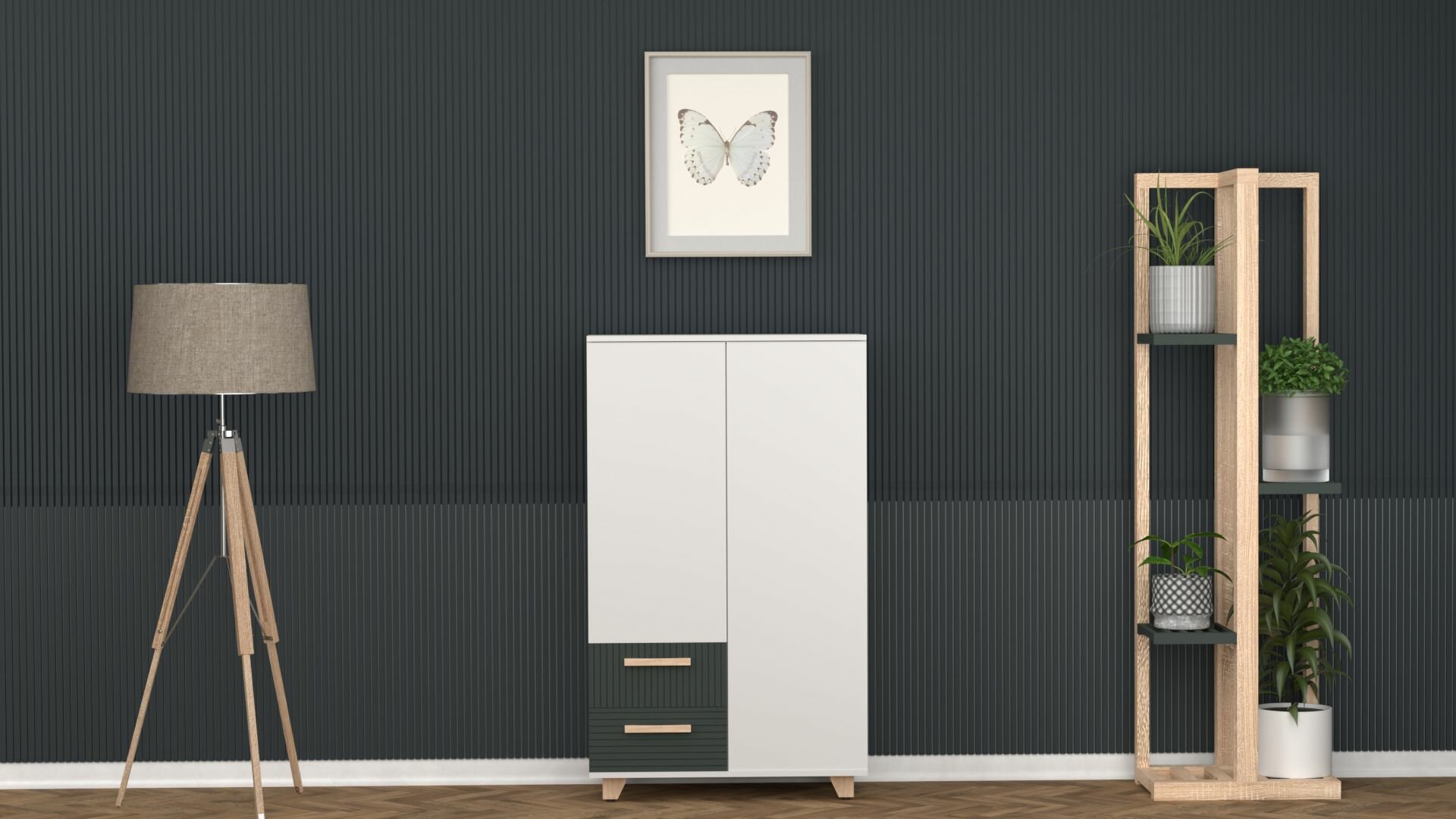 Стеллаж Копенгаген без стекла ЛДСП Дуб Сонома / МДФ Серый графит