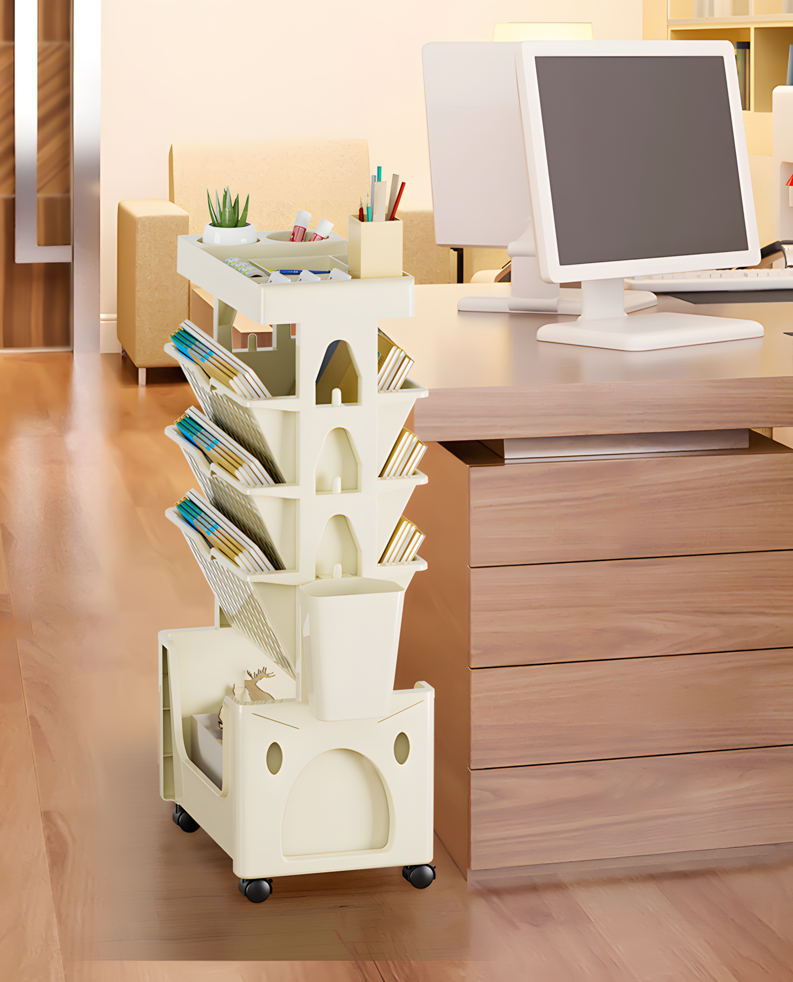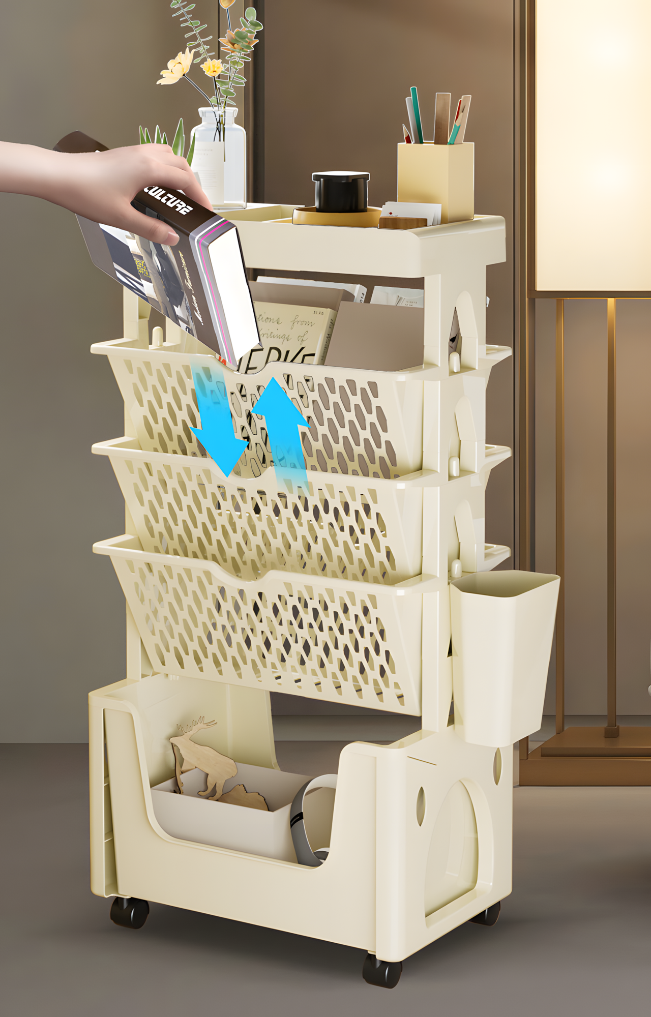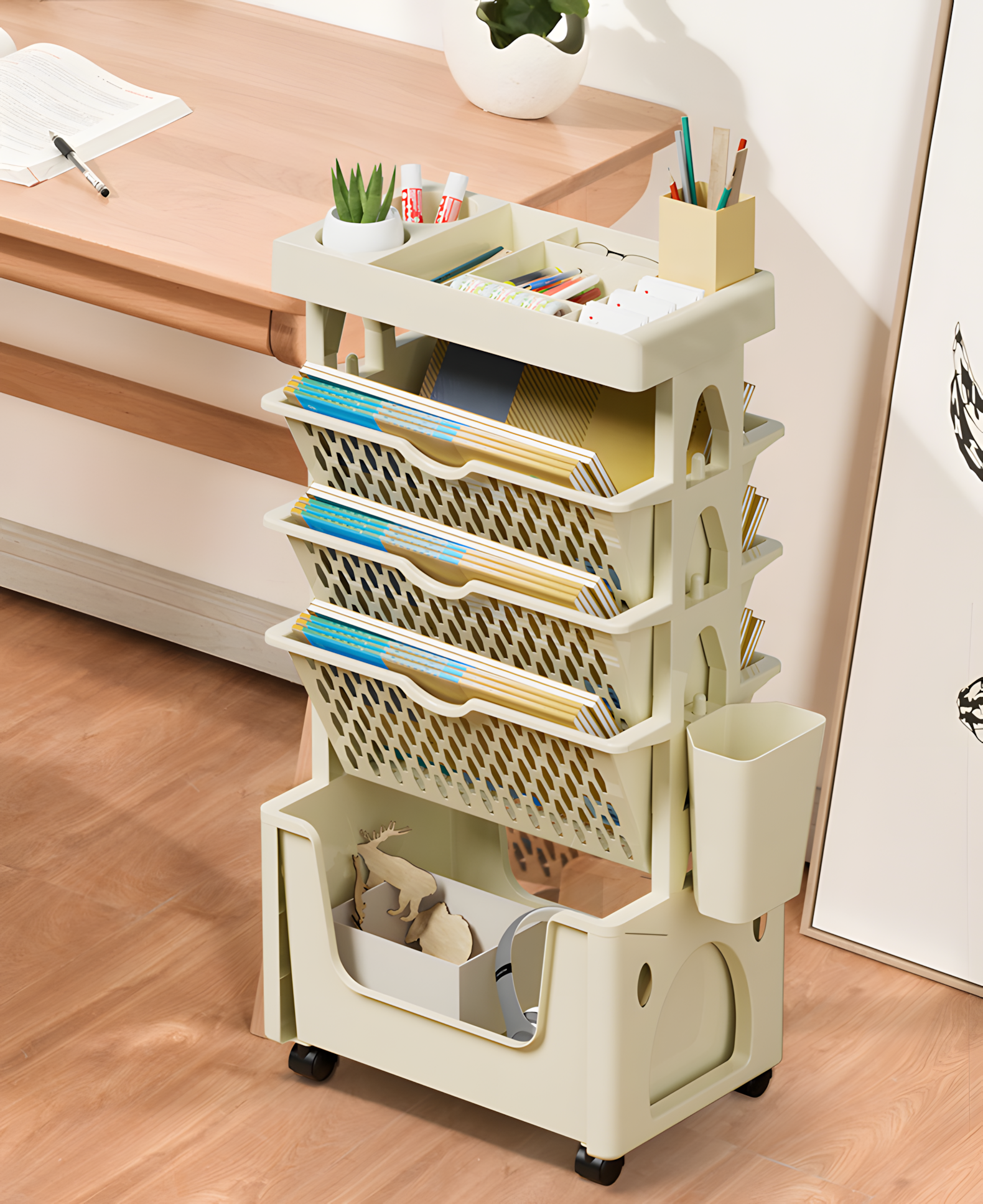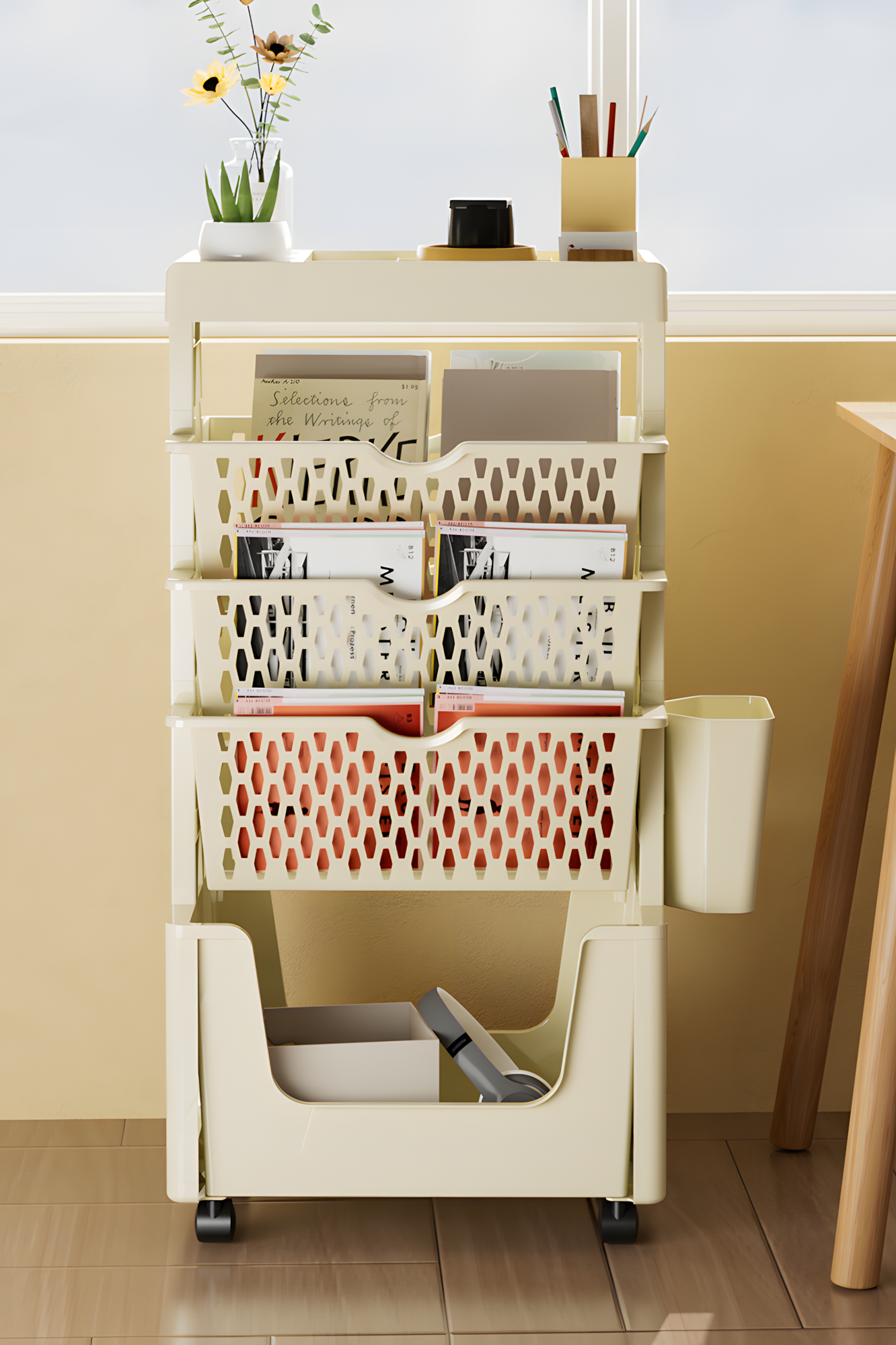 Этажерка универсальная, 5 уровней, на колесиках, кремово-белая, 75.3х37.6х22.5 см