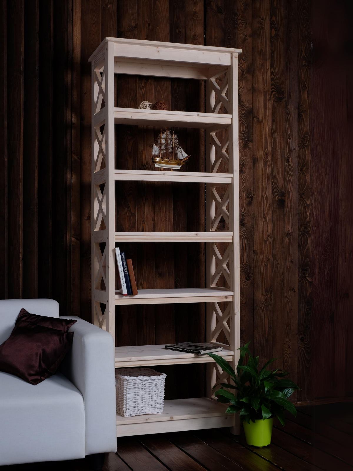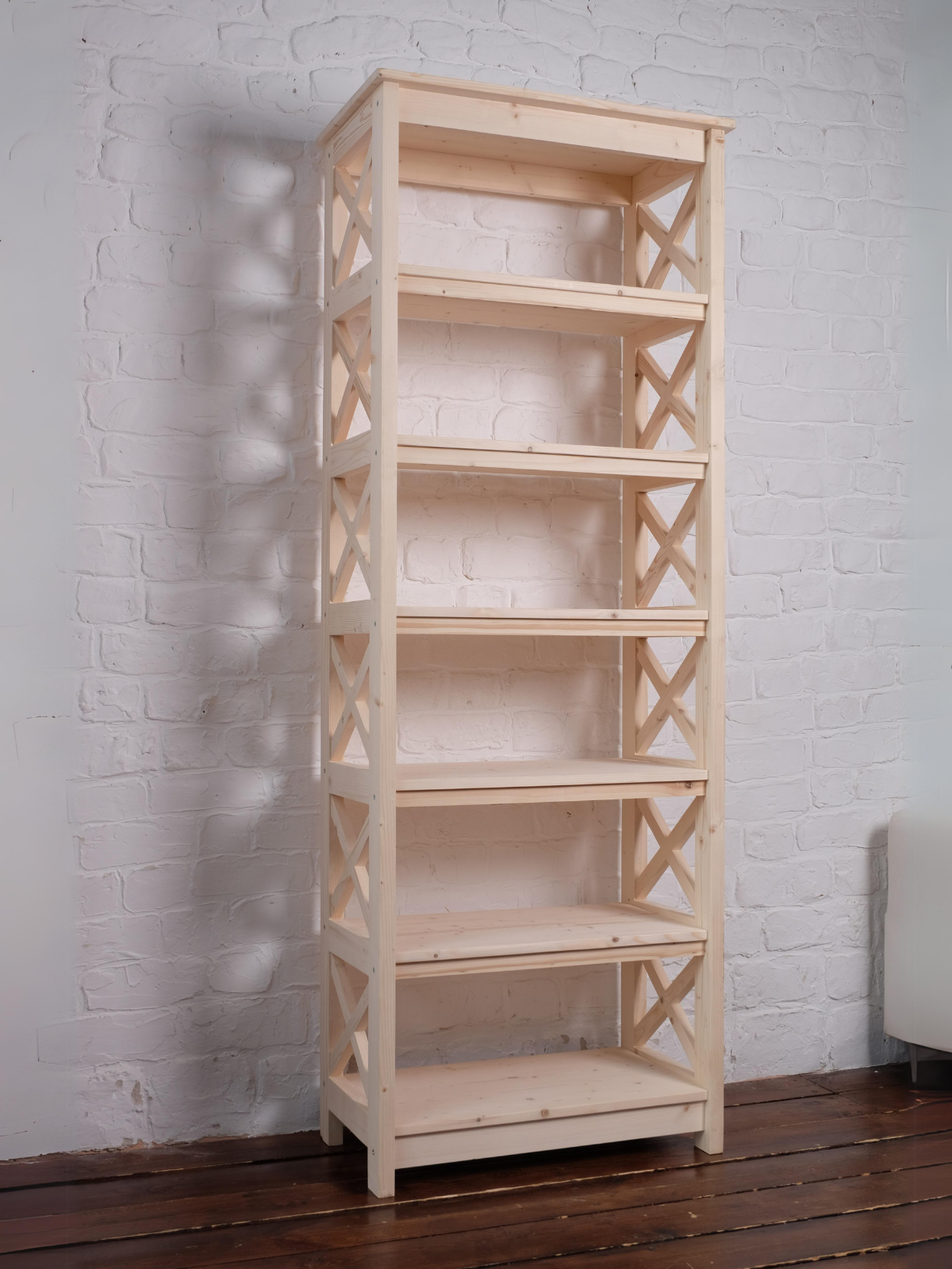 Стеллаж деревянный напольный 165х89х40см широкий, этажерка Прованс 6 полок