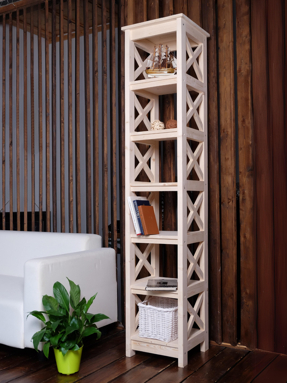 Купить Стеллаж деревянный напольный 195х40х40см узкий, этажерка Прованс 7 полок