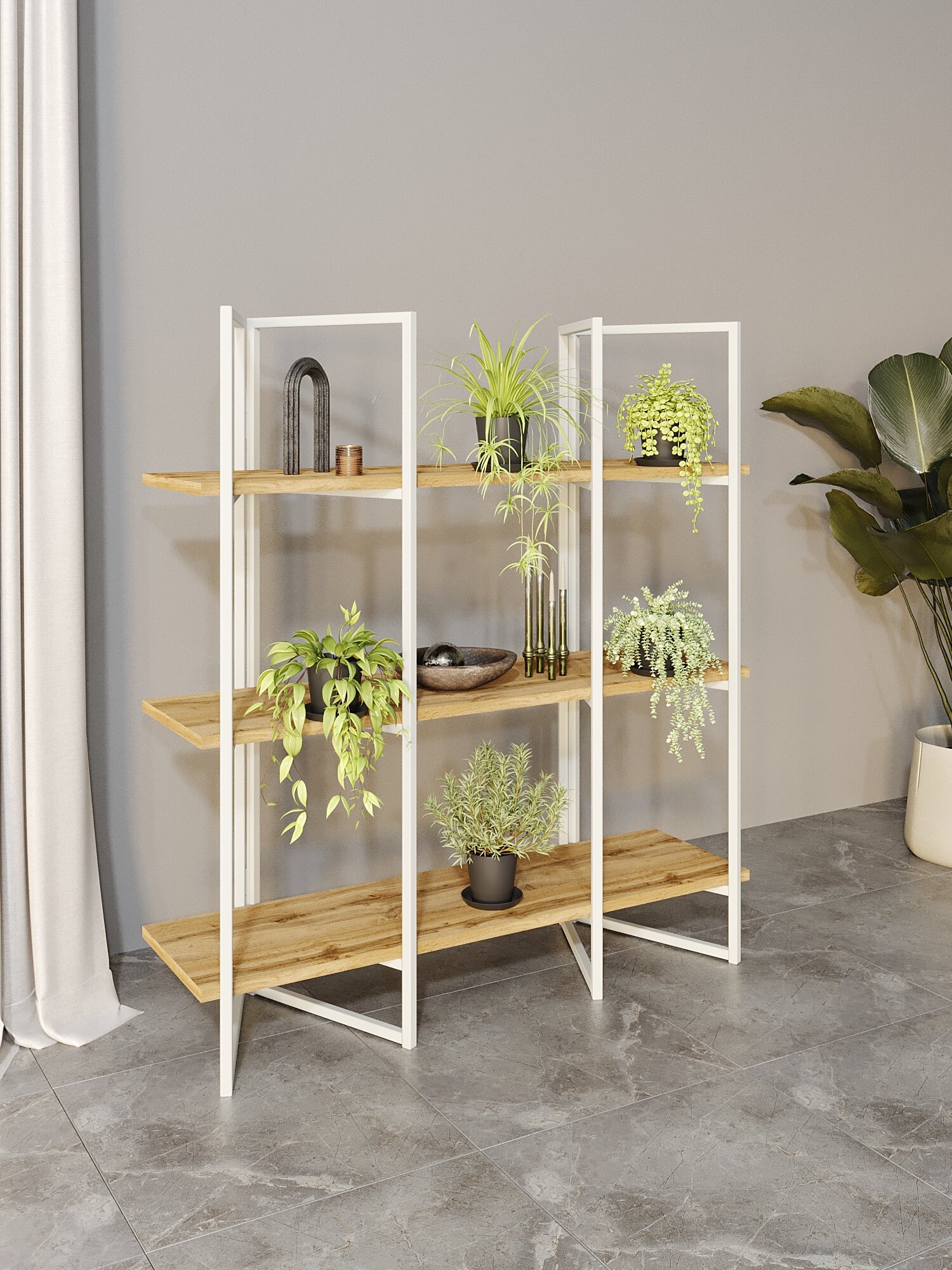 Купить Полка для дома KM LOFT Дивульгато Лайт в гостинную перегородка белый/дуб вотан