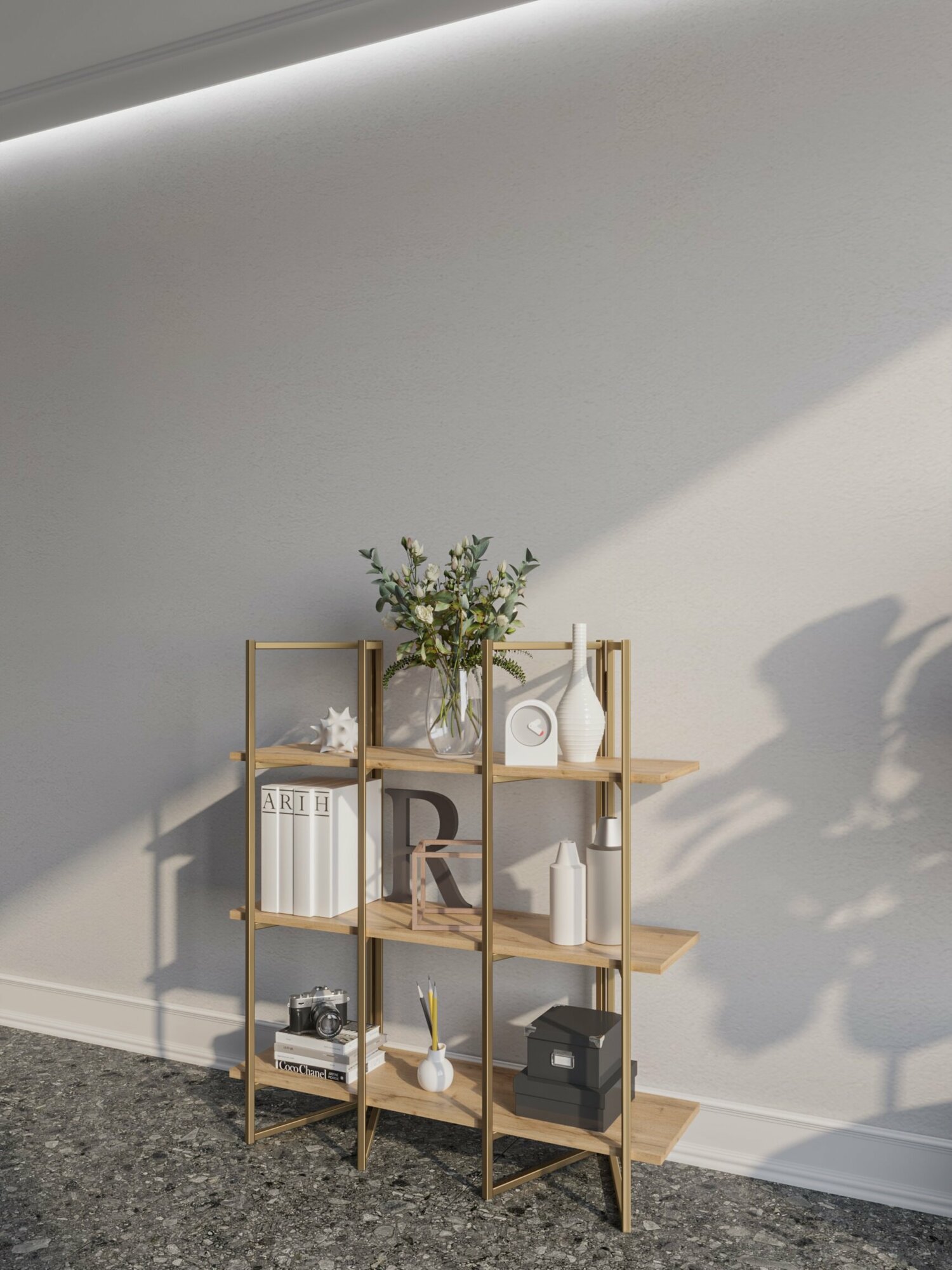 СохранитьПолка для дома KM LOFT Дивульгато Лайт в гостинную перегородка золотой/дуб вотан интересное: