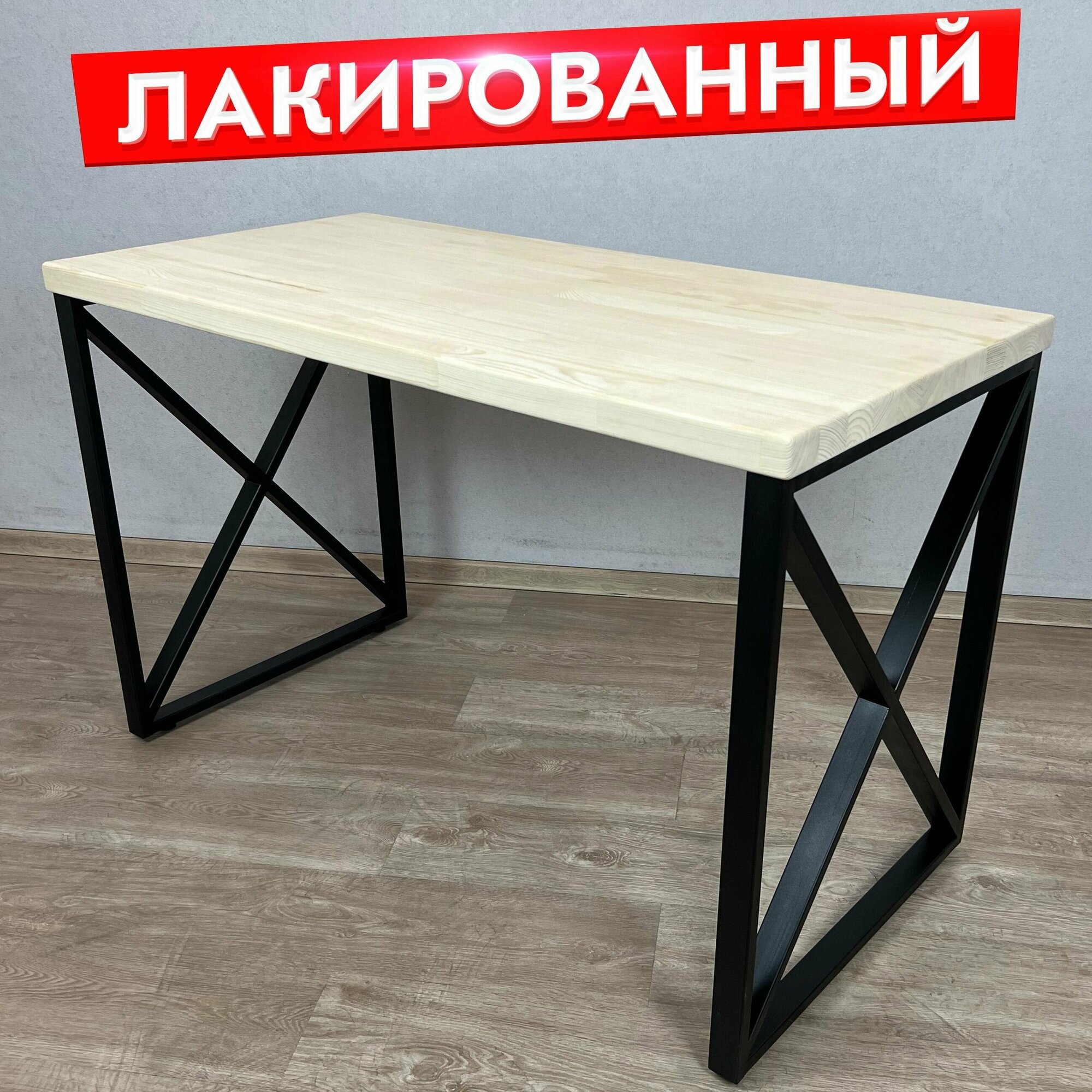 Купить Стол кухонный Loft с лакированной столешницей из массива сосны 40 мм и черными металлическими крестообразными ножками, 100х80х75 см