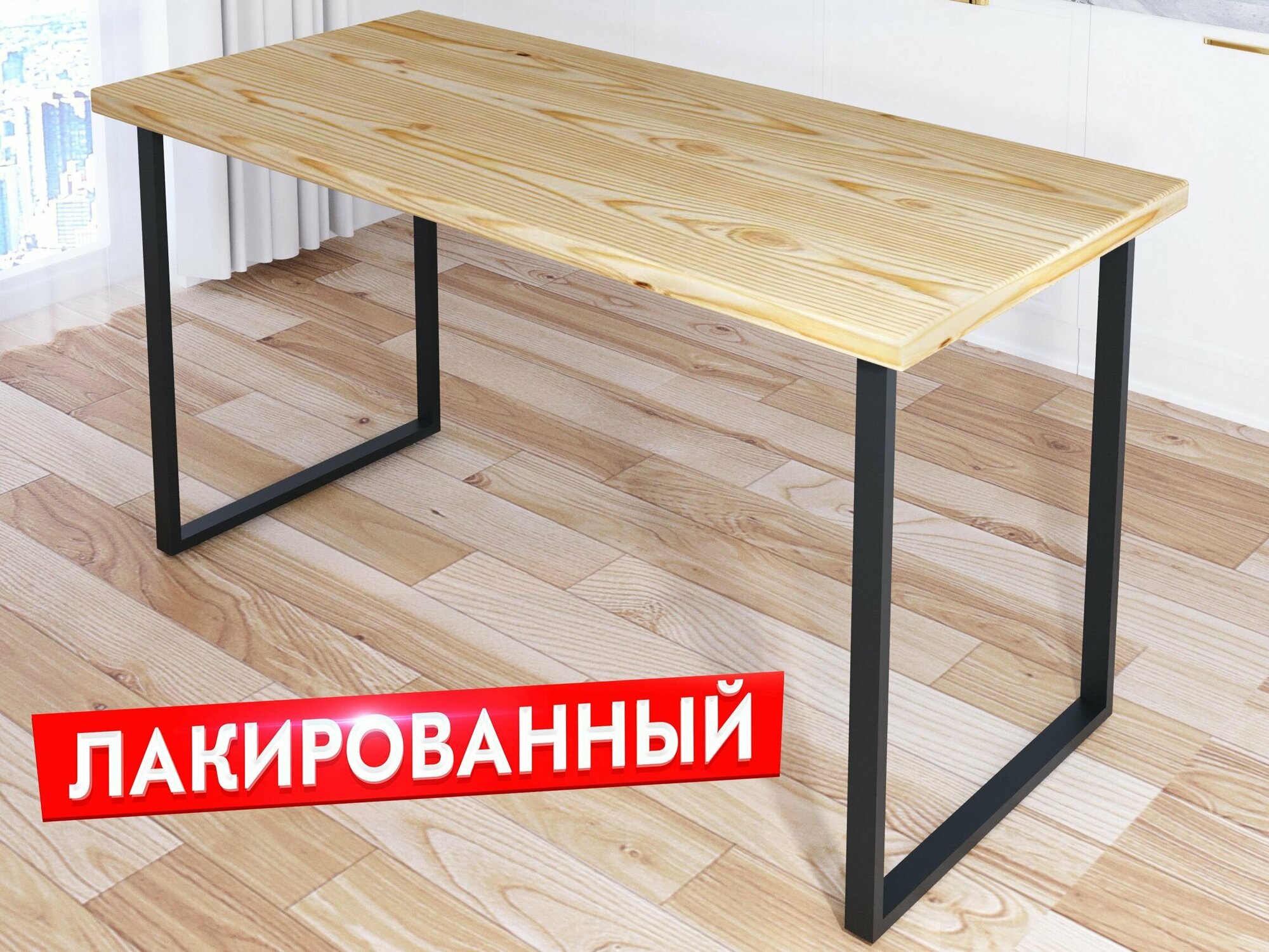 Купить Стол кухонный Loft с лакированной столешницей из массива сосны 40 мм и черными металлическими ножками, 140х60х75 см