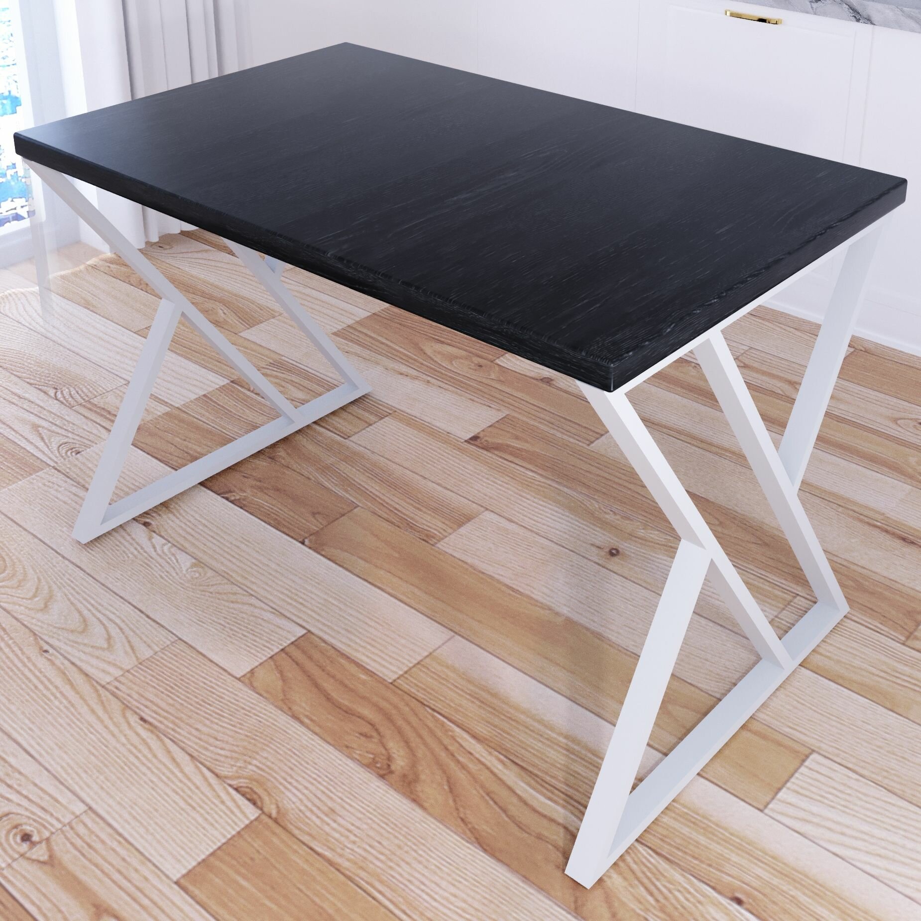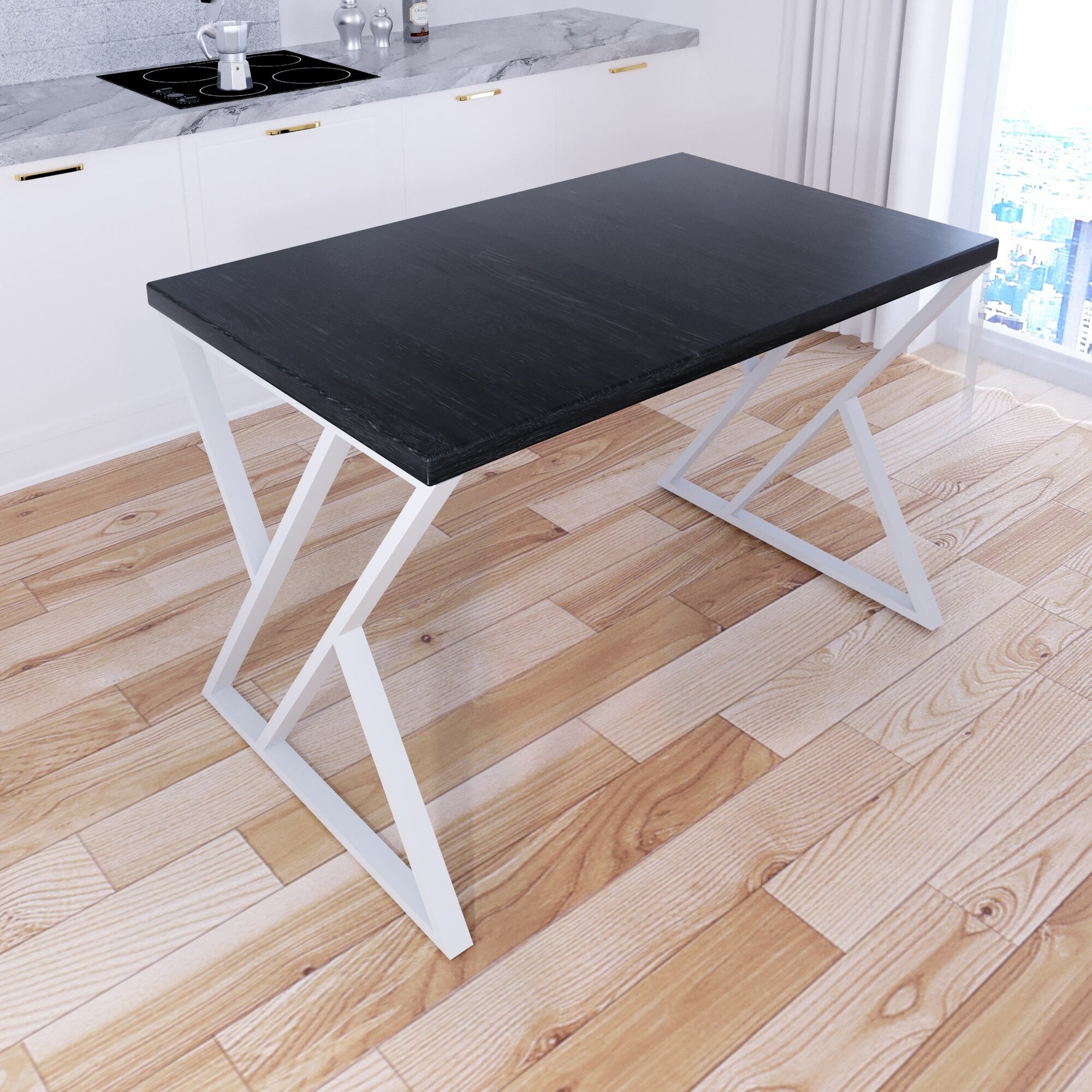 Купить Стол кухонный Loft со столешницей цвета черного оникса из массива сосны 40 мм и белыми металлическими Z-образными ножками, 110х70х75 см
