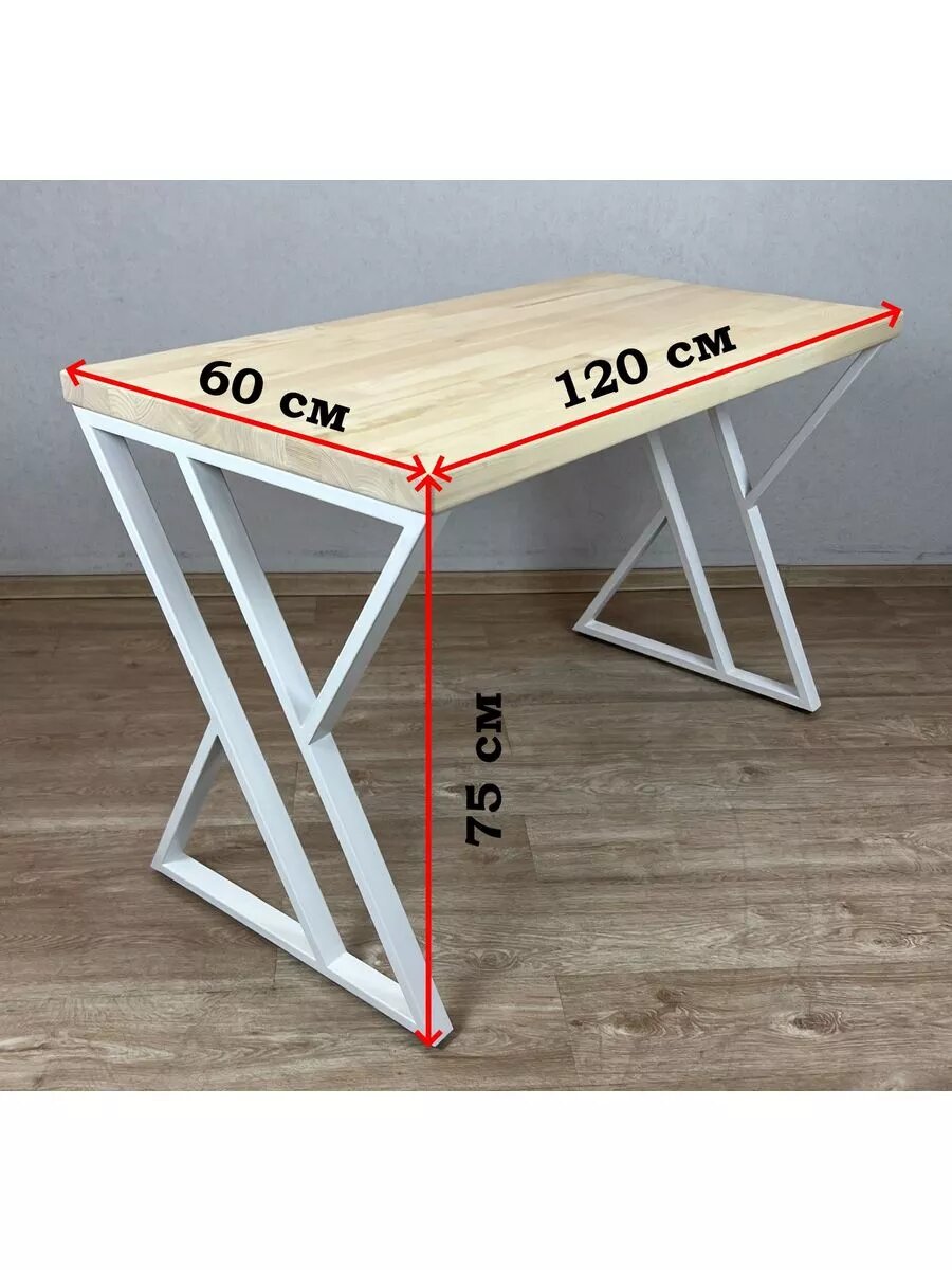 Купить Стол кухонный Loft с лакированной столешницей из массива сосны 40 мм и белыми металлическими Z-образными ножками, 120х60х75 см