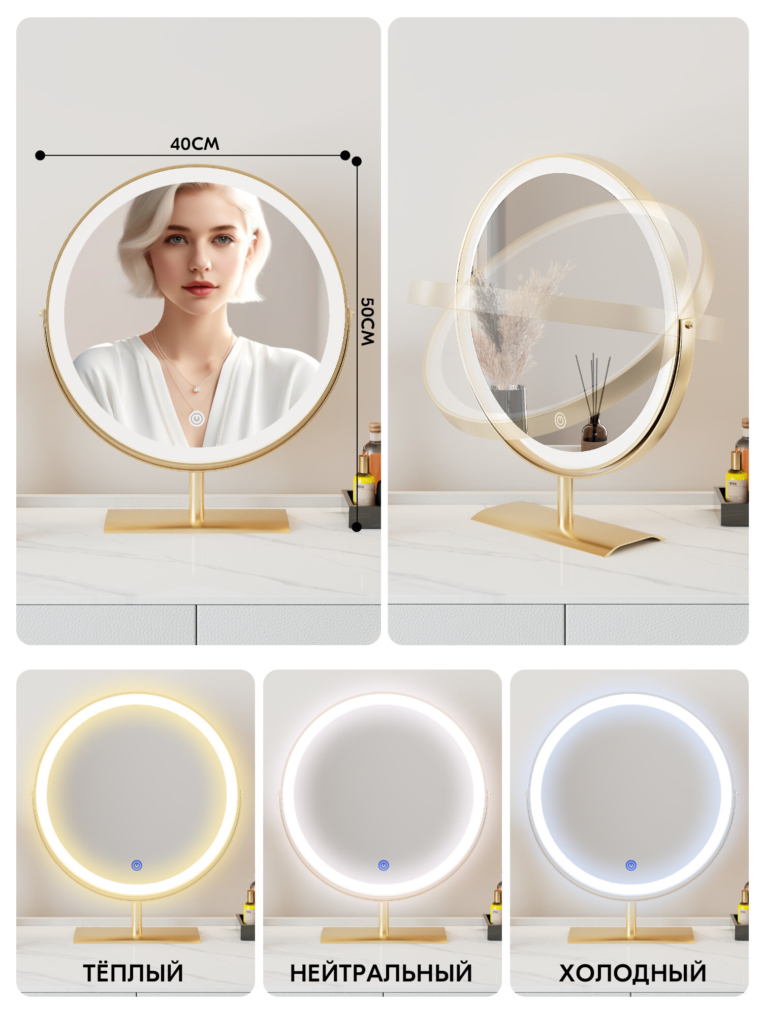Комплект туалетный столик, LED зеркало и пуфиком 80x40x127 см, стекло, каркас из дерева, обтянут кожей, Шампань золотой
