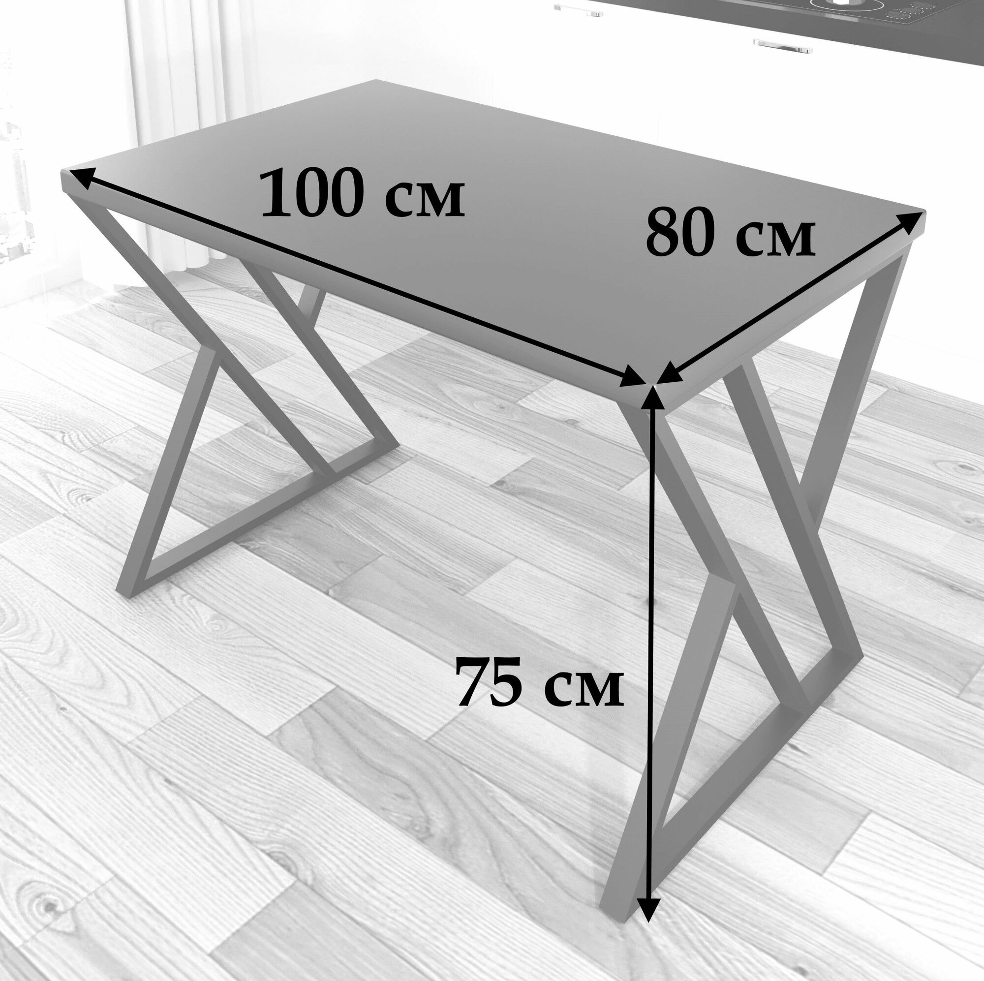 Купить Стол кухонный Loft со столешницей белого цвета из массива сосны 40 мм и черными металлическими Z-образными ножками, 100х80х75 см