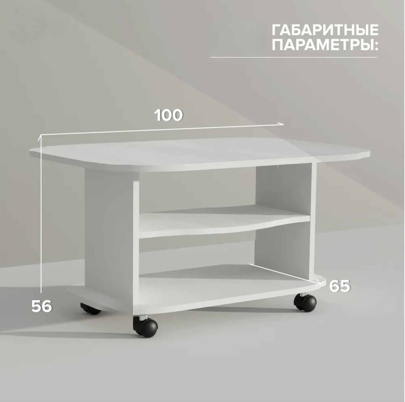 Журнальный Стол на колесных опорах, Белый, 560x1000x650 мм, из ЛДСП