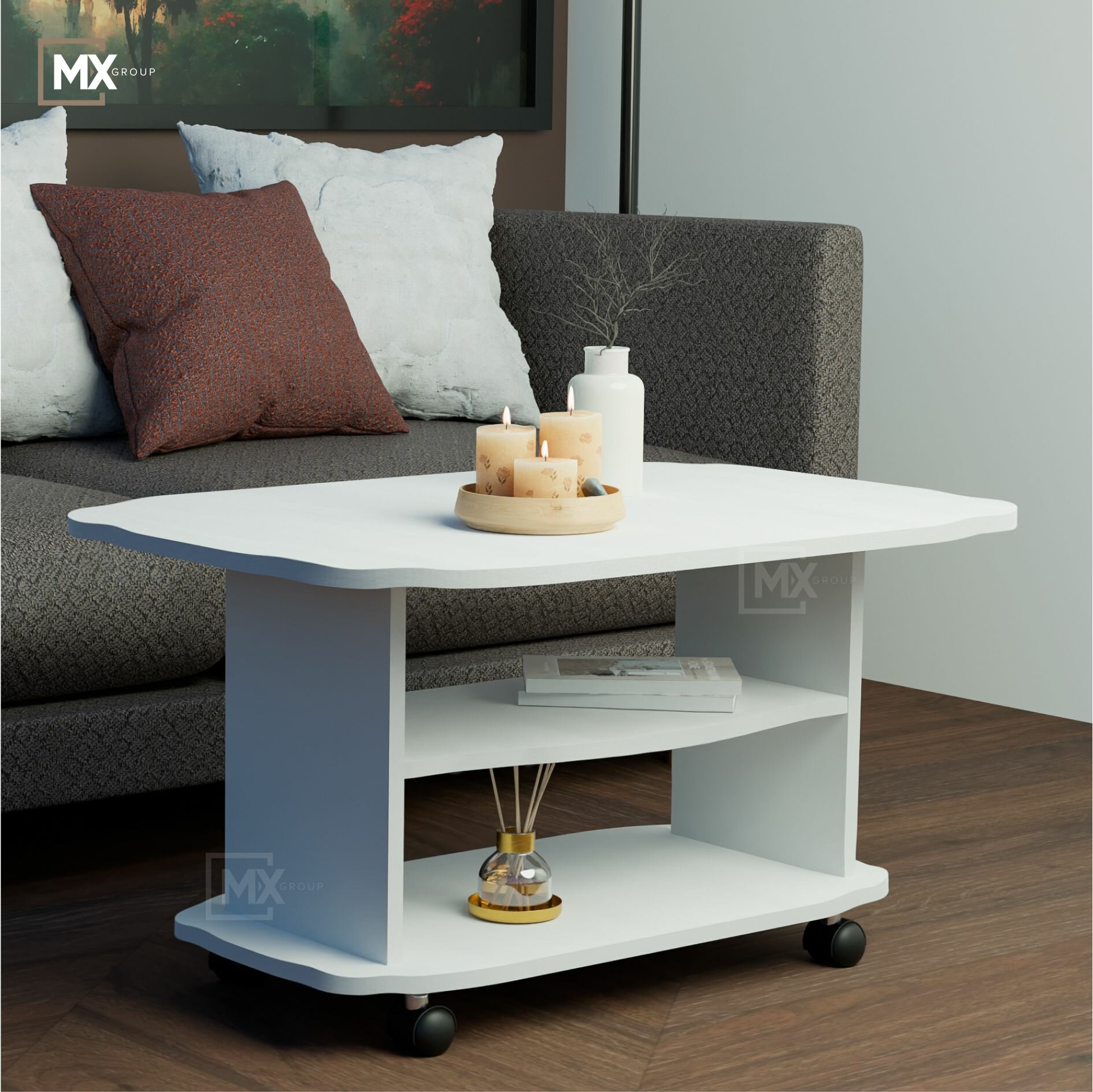 Журнальный Стол на колесных опорах, Белый, 560x1000x650 мм, из ЛДСП