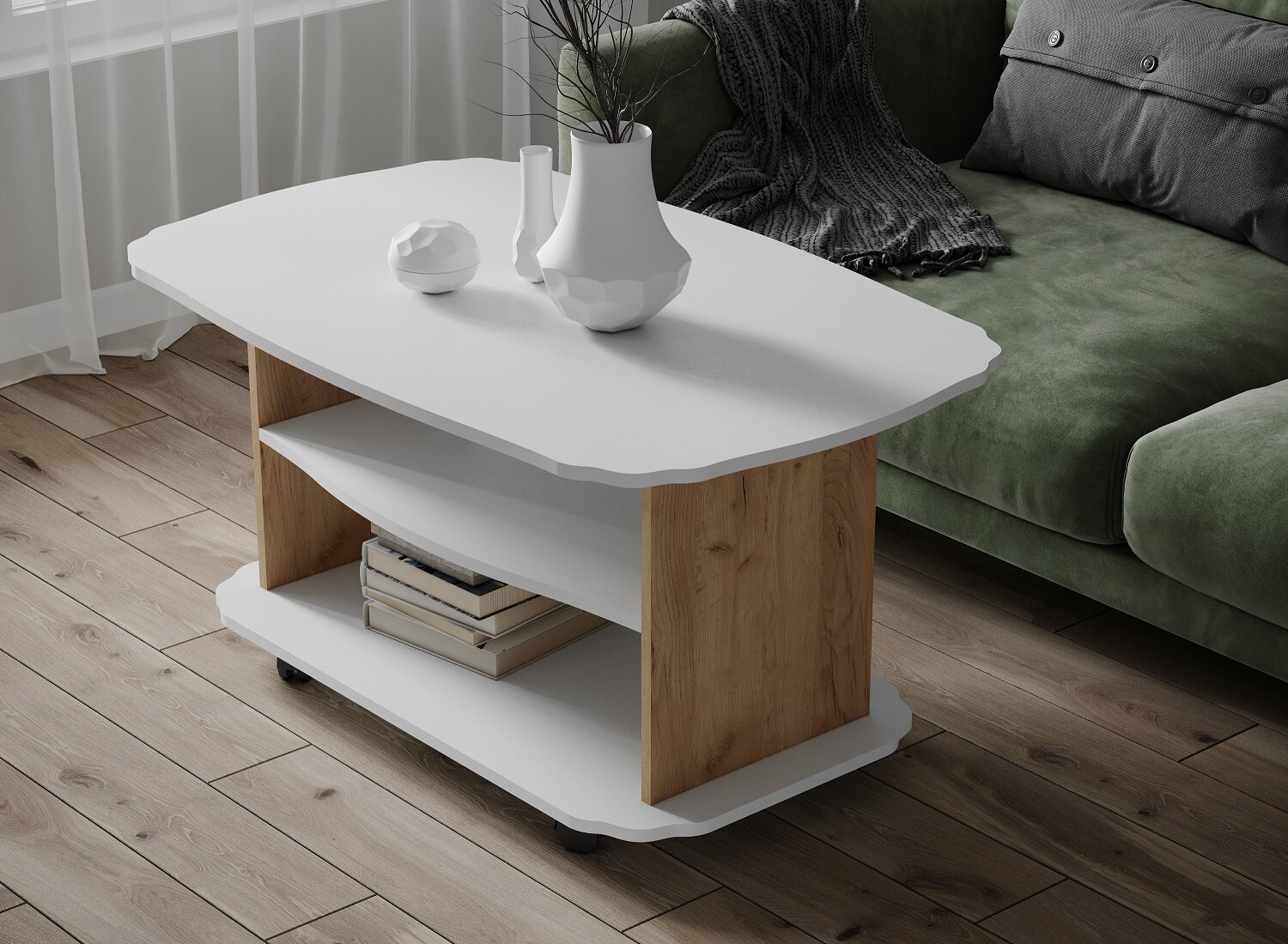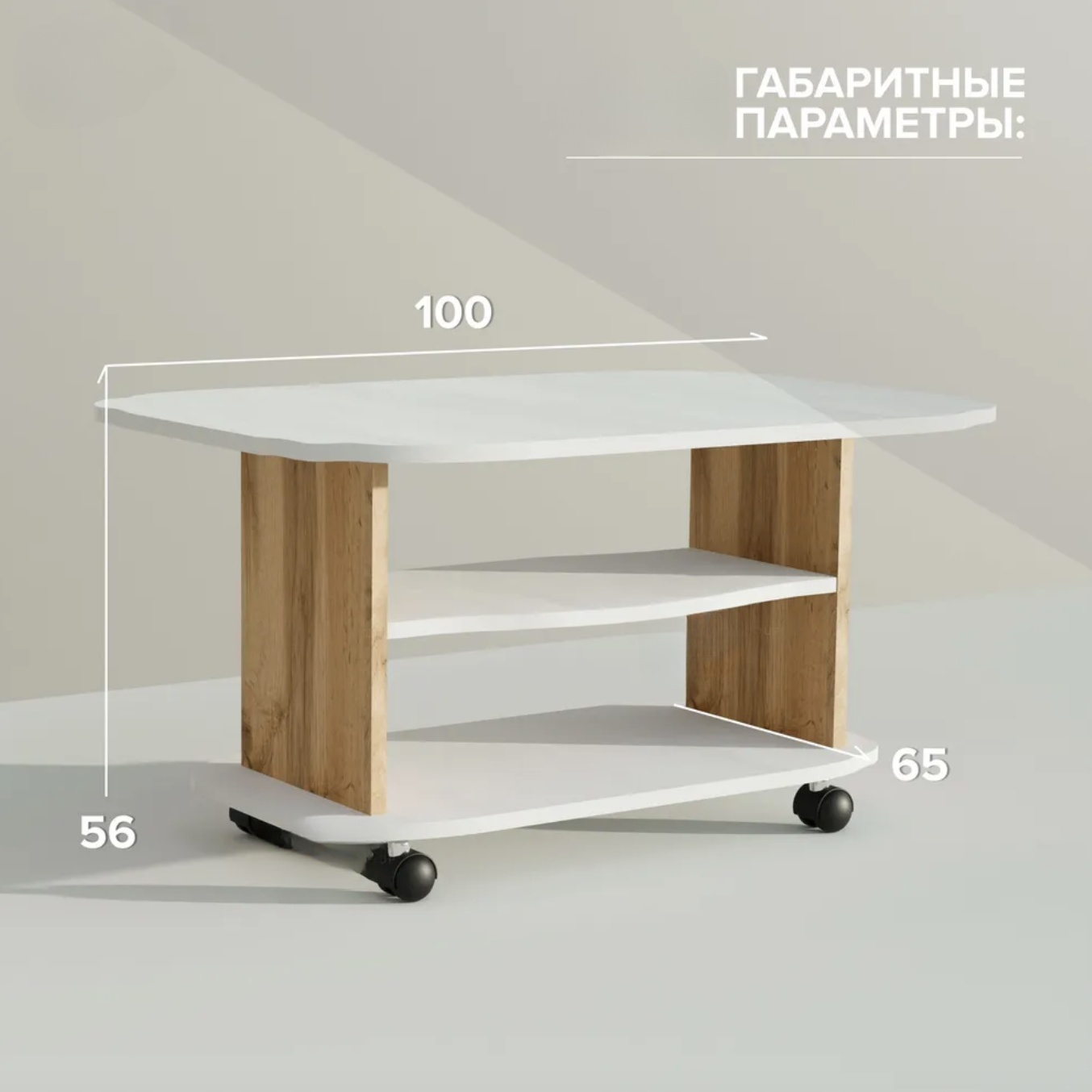 Журнальный Стол на колесных опорах, Дуб Крафт Золотой и Белый, 560x900x600 мм, из ЛДСП