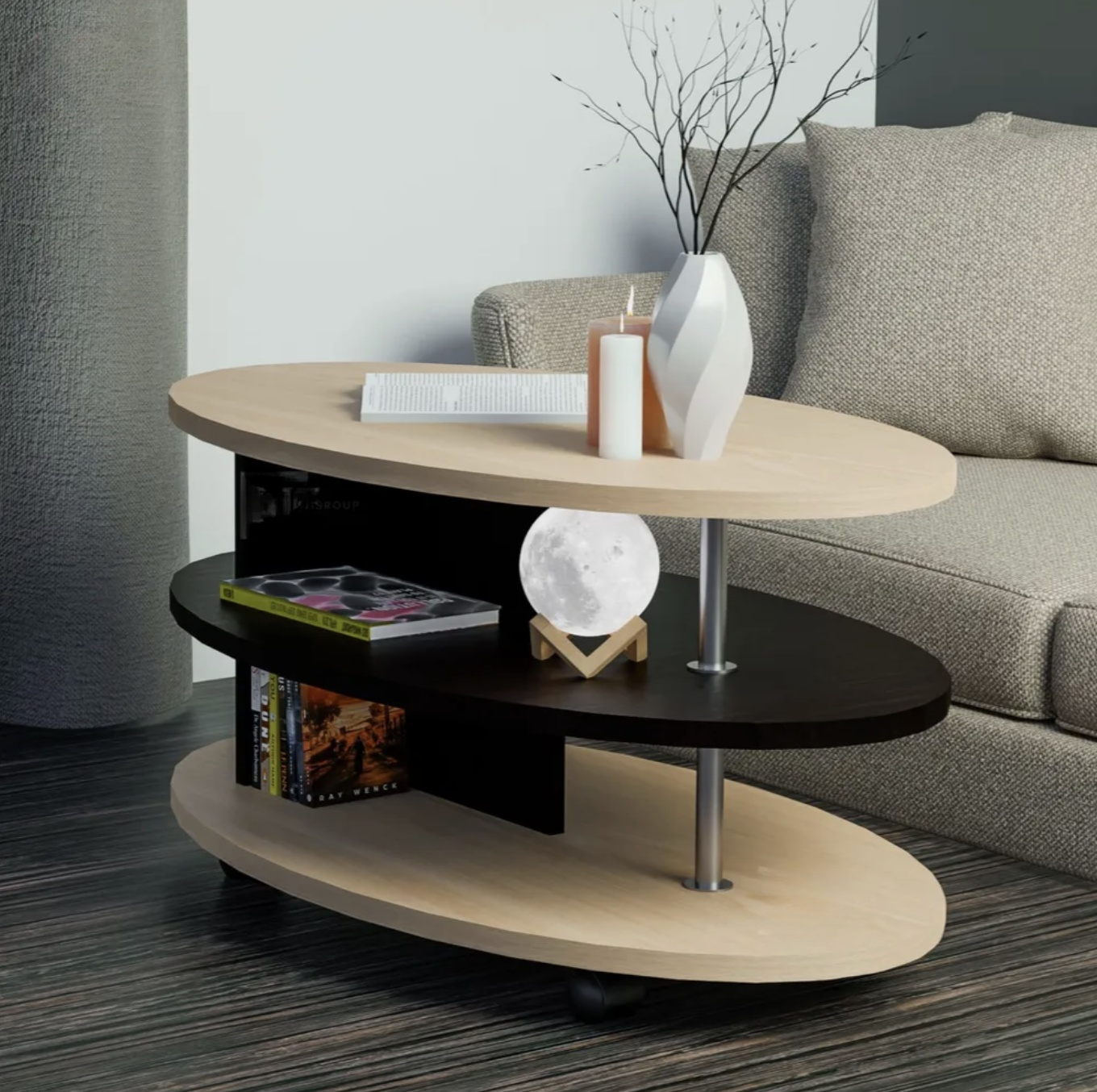 Журнальный стол ARNIKA "Консул-5", дуб сонома, ясень шимо, на колесиках, для гостиной